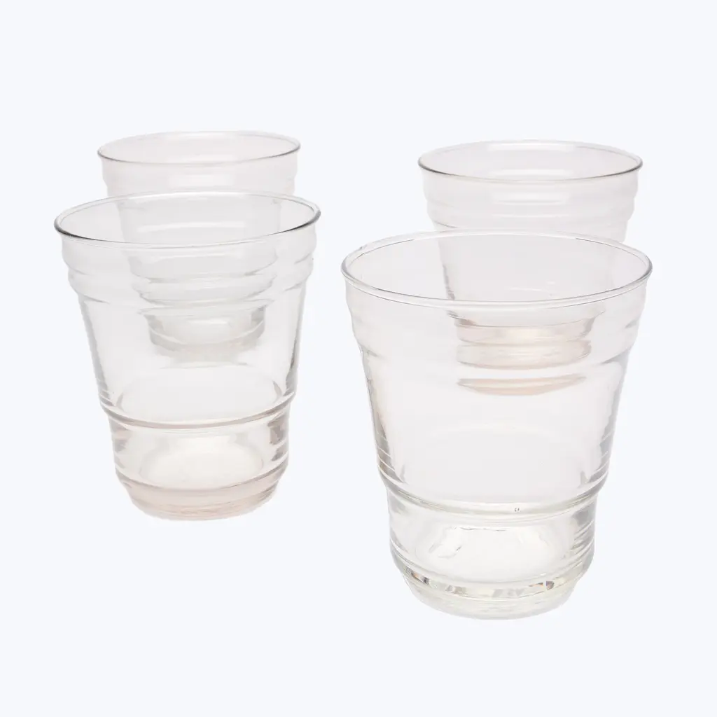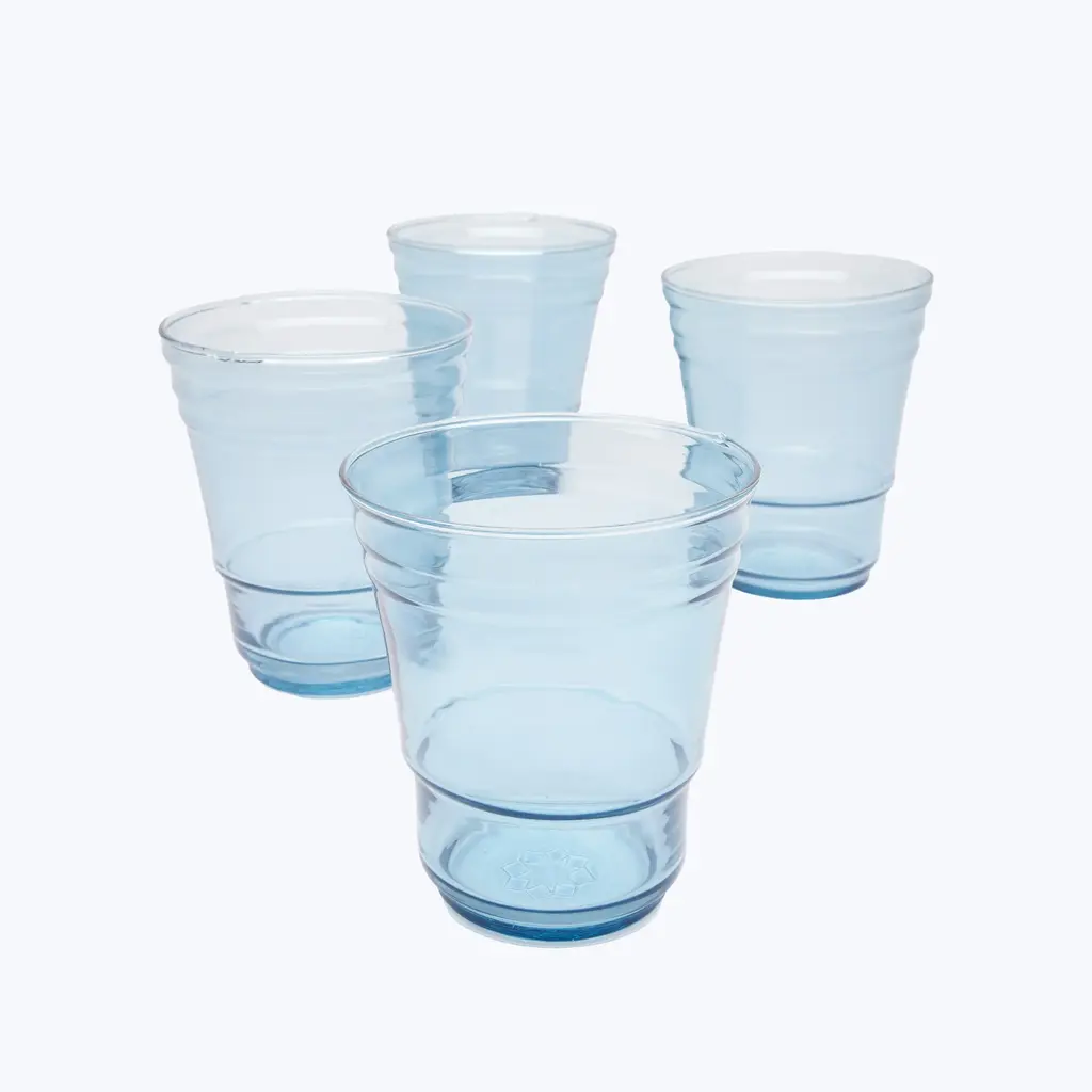 This Set of 4 Fantastic-Not-Plastic Tall Glass is a festive glassware choice for your next dinner party or everyday dining routine. Inspired by classic party cups, this collection of Fantastic-Not-Plastic Tall Glasses is a sustainable choice for your drinkware collection with its recycled glass origin and clean-energy creation in a family-owned factory. Each glass is one-of-a-kind, hand-blown, and hand-tinted in a variety of colors that are perfect for mixing and matching to create your own unique arrangement. Each tall glass is hand-blown into custom molds and hand-painted. This process may result in subtle variations, lending to the individual character of each glass. Dishwasher and microwave safe. Made from excess stock, vintage, and sustainable materials, each piece of Rentrayage home decor is as understated as it is revolutionary.