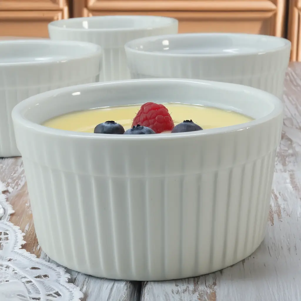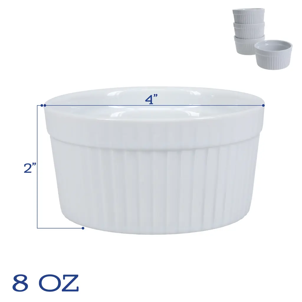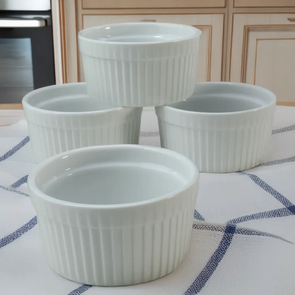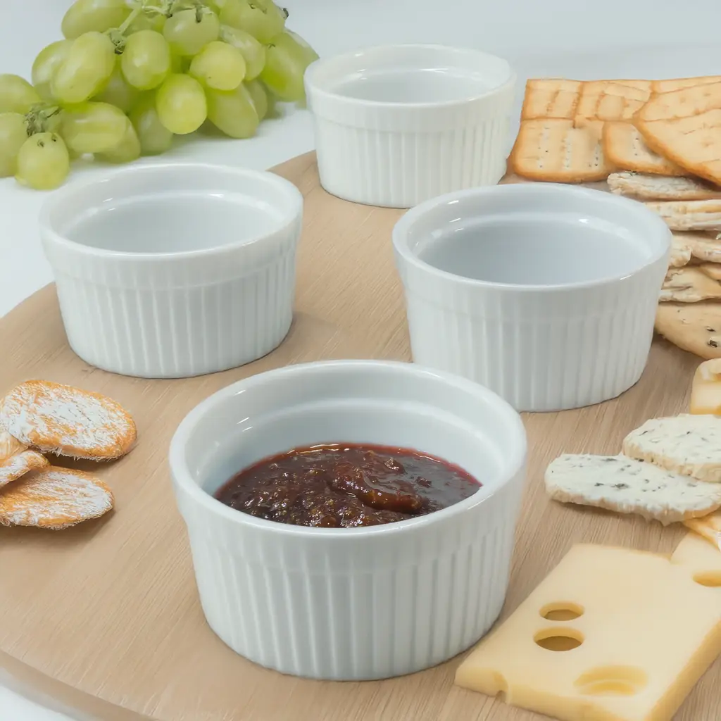The BIA Cordon Bleu Porcelain Ramekin Set embodies a blend of practical function and classic design. This set comprises four 8 oz. ramekins, crafted from premium quality super white porcelain renowned for its durability. Each ramekin is designed to withstand the rigors of oven, microwave, and dishwasher use, for everyday kitchen tasks and special occasions alike. These ramekins are not just perfect for baking and serving individual souffles, puddings, and custards, but also for an array of creative uses. Whether holding dips and ice cream toppings or functioning as a chic desk organizer for paperclips or a bathroom accessory holder, the possibilities are limitless. The timeless design complements any home decor, making these ramekins an elegant addition to your entertaining arsenal. BIA Cordon Bleu: Designed With Modern Sensibility For Wherever You Live, However You Cook, And Whenever You Entertain.