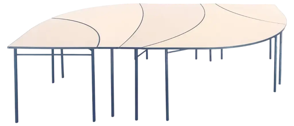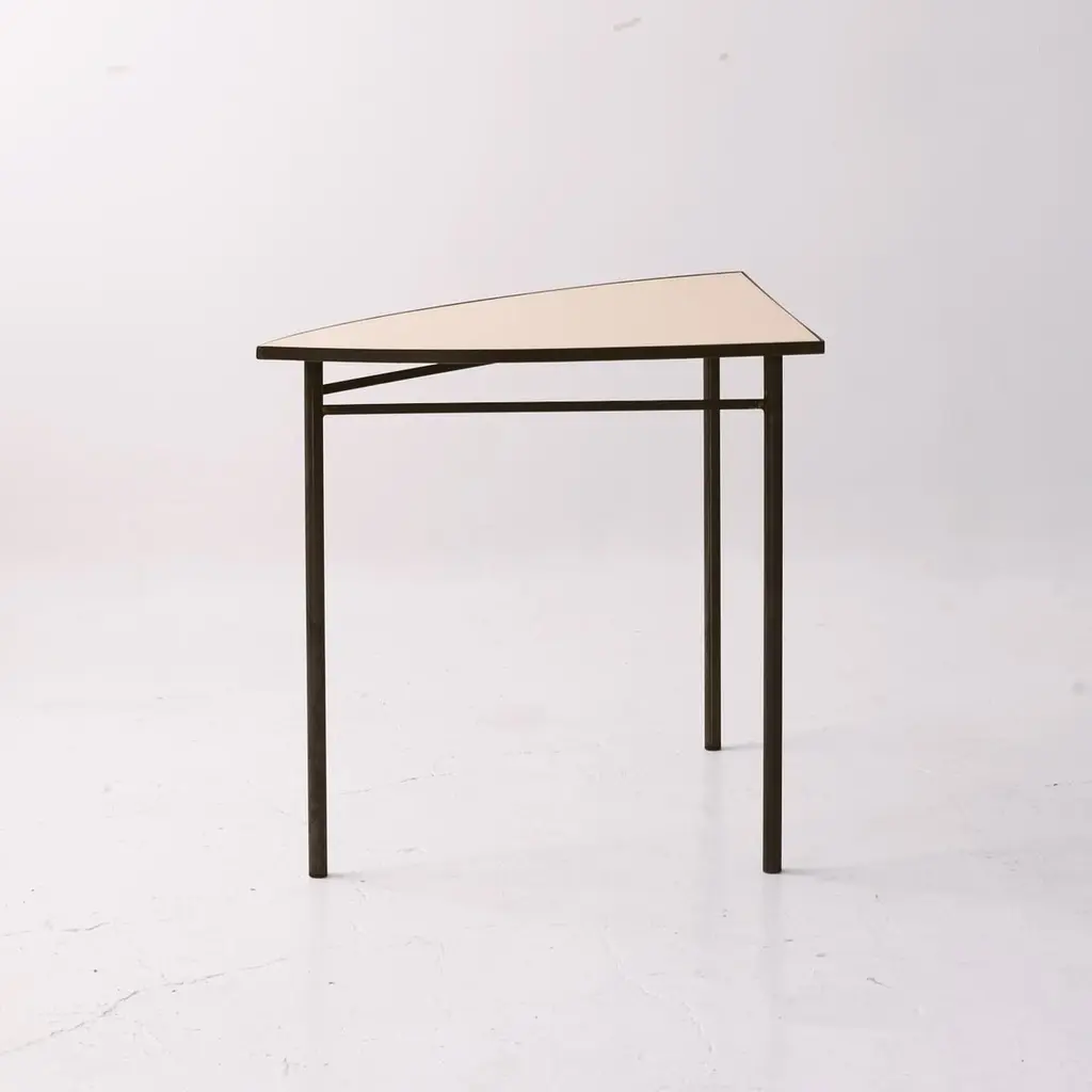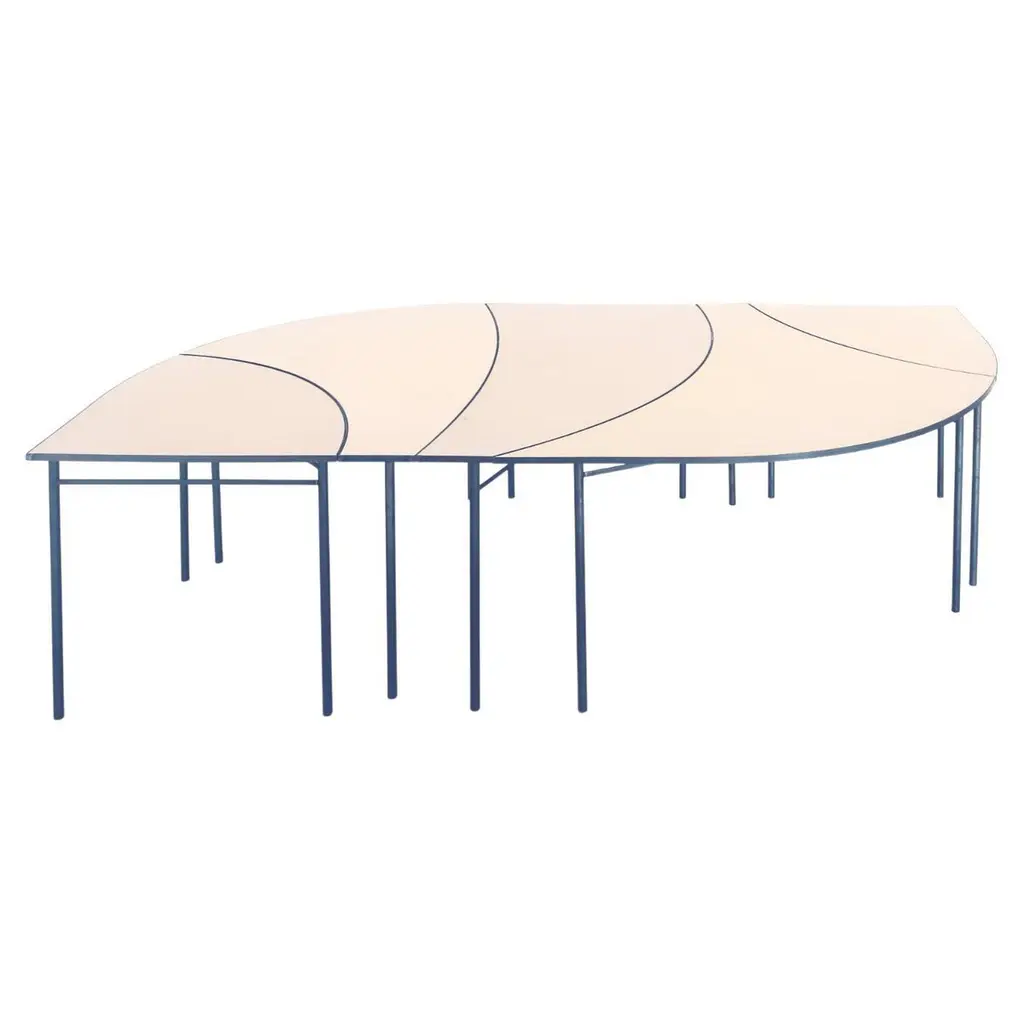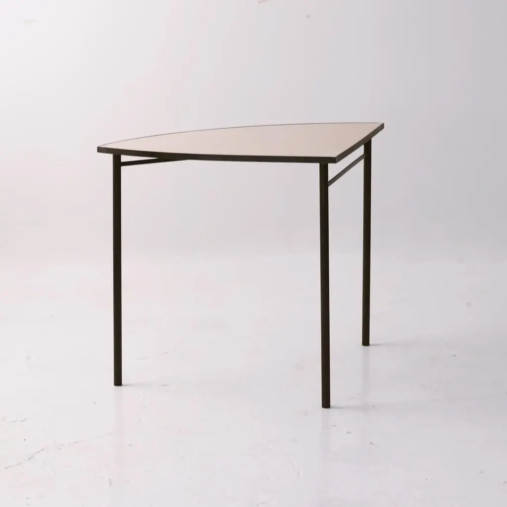 Set of 5 Tabula [non] rasa tables by Studio TracciaDimensions: W 280 x D 140 x H 74 cmMaterials: Steel.Different combinations are availableThe table was designed for our installation called tabula[non]rasa developed for Milan Design Week 2021, with the intent of materializing the potential of circularity through the lens of food waste. It is realized in recycled steel and a special table top material made of food scraps.The material of the table top was developed by MOGU, using a bio-based resin and low-value biomass, such as corn crops, rice straw, spent coffee grounds, waste algae and shells.The design of the table was conceived within the idea of working on modularity while yet shaping something elegant, playful and able to generate unexpected interactions. The pieces can be assembled all together to form a large leaf-shaped table, or can be arranged in creative combinations, to suit different needs, to display objects in a shop, for an exhibition or in a house.The whole table tells a story of circularity: innovative materials crafted into beautiful objects describe a new possible paradigm where resources are not depleted, but reinvested into a new metabolic loops. A new materialism that invents new narratives and form the common ground of our renewed relationships with the planet. And even more than that, a table of discussion that makes visible, the invisible flows of waste, not in a condescending way but with a positive proposal where different and circular logics are actually possible.Studio Traccia is a Milan based studio, founded in 2020 by Claudia Orsetti and Luigi Olivieri. Both have worked for over 10 years around the world, between Tokyo, London, Berlin and Amsterdam, gaining different experiences in a series of international studios such as SANAA, Heatherwick Studio, Tomas Saraceno and UNstudio.Studio. Traccia works at the intersection of many worlds, using always as a starting point contemporaneity which they try to digest, communicate or react to it through architecture, installations, photography, design, but also the curation and organization of talks and events.Research is a fundamental part of the studio’s creative working method: doubts, questions and explorations help formulate new points of view and new ideas that move across many scales and take on many forms. The firm believes that design today must expand itself, be contaminated by knowledge from other disciplines, and assume new perspectives, which is the reason why the studio constantly seeks for different cross-disciplinary collaborations.