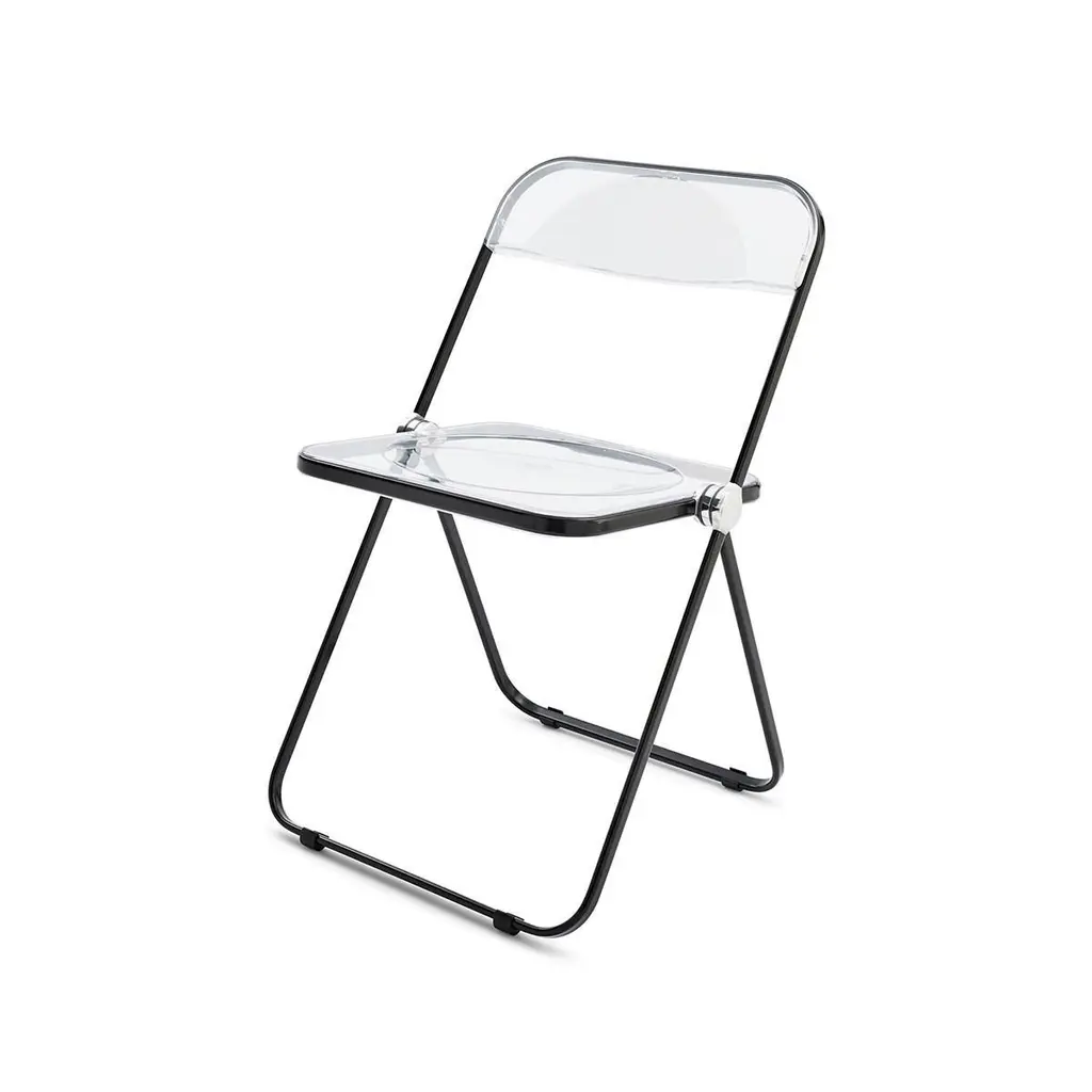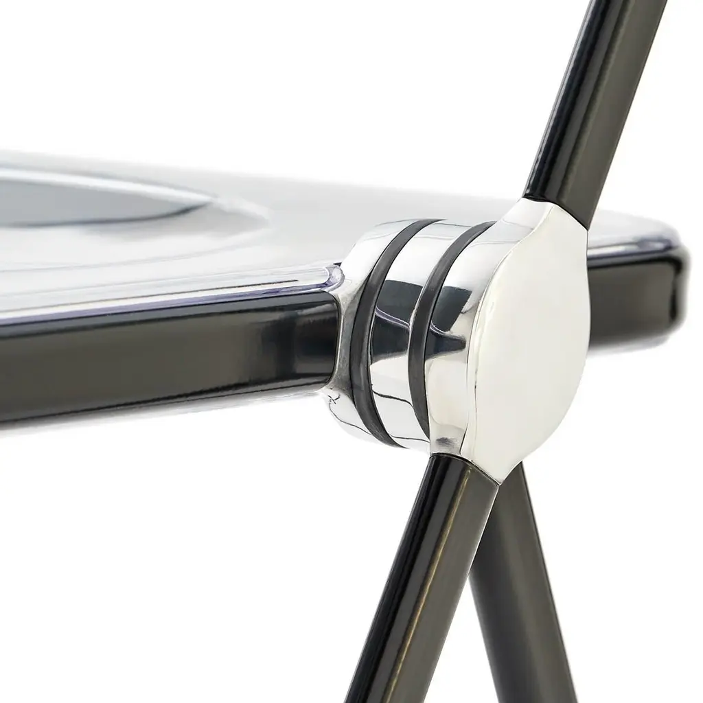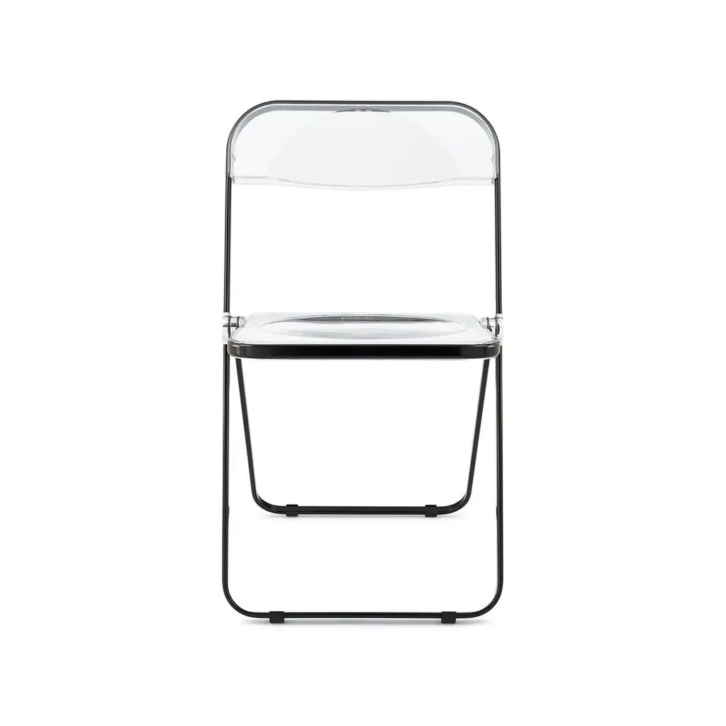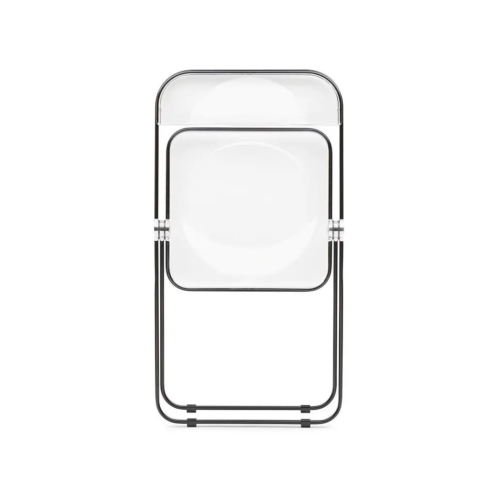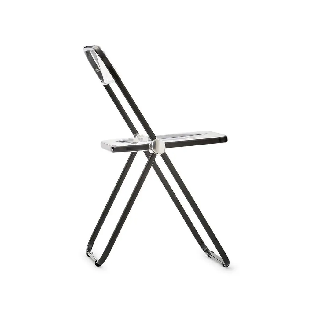 Original and signed set of 8 "Plia" clear lucite with black frame folding chairs. This fantastic set was designed by Giancarlo Piretti for Castelli in 1967. These folding chairs are made of clear lucite with a black frame and are in perfect conditions (NOS), with no flaws and come with their original box. The "Plia" folding chair is a true design classic as it has won several awards and is also part of the MoMA collection. The "Plia" chair has a fantastic folding mechanism which allows the chair to be folded very flat so that it can be stored easily. Each chair in this set is signed and engraved with the manufacturer's mark.A multipurpose and iconic set that will be perfect for a modern or minimal project. Giancarlo Piretti was born in Bologna in 1940.He attended the Bologna State Institute of Art, where he obtained the title of Design Teacher. In 1960 he attended the Academy of Fine Arts in Bologna. Subsequently, for seven years, he was lecturer in Industrial Design at the State Art Institute of Bologna. In the same period, for 12 years, he worked as an interior designer for Anonima Castelli, designing their lines of furniture for the home, office and community, for which he registered numerous industrial and mechanical invention patents. His best-known projects include PLIA, a folding chair, PLATONE, a folding table, DSC (106-AXIS), a seating system for community and institutional spaces, and SISTEMA 61, a modular sofa system. Giancarlo Piretti participates in numerous Italian design competitions, obtaining prizes and special mentions. In 1971 he received the SMAU award and the BIO 5 Distinction at the Ljubljana biennial, Slovenia for Plia. In 1973 he was awarded, as always for PLIA, the GUTE FORM mention by the Chamber of Commerce of the Federal Republic of Germany, and a special mention by the British Government. In 1971 PLANO won the IBD gold medal (USA). For the VERTEBRA seating system: in 1977 he was awarded, together with Emilio Ambasz, the gold medal of BD (USA), the SMAU prize in 1979 and the Compasso d'Oro (Italy) in 1981. As always jointly with Ambasz, in 1980 he was awarded the "National Industrial Design Award" (USA) for LOGOTEC, a lighting system. In 1975 Giancarlo Piretti was appointed member of the Scientific-Didactic Committee of the Higher Institute for Artistic Industries of Florence. His work is often published in numerous international journals.