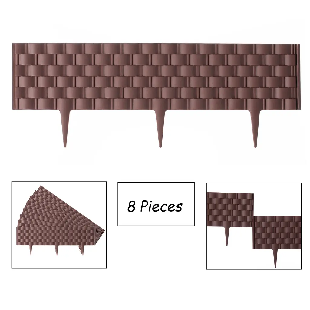 Set Of 8 Pcs Decorative Rattan-Inspired Plastic Landscape Edging And Garden Fence Borders In A Rich Coffee Hue For Lawn - Brown