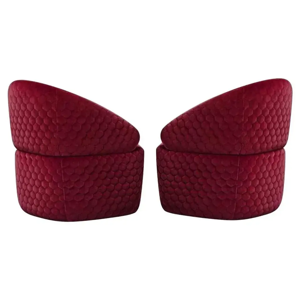 Set of 2 Agora Petit Chair by Pepe Albargues Dimensions: 75 x 70 x 65 cm Available in different colors Inspired by the volumes of the upholstered furniture from the 1970s, Agora Petit is a revision of the forms of a decade that is now back and very present in the style and trends. A sculptural armchair, with simple lines and reduced dimensions, it is the result of having been designed to meet the needs of contract and hospitality projects, in which it seeks to optimize the space without compromising maximum comfort and aesthetics. Galerie Philia offers different finishing options for the base, both fixed legs and a rotating base, and also the possibility of combining different fabrics in the backrest and seat, allowing infinite possibilities for multiple interior design projects. This piece is attributed to the mentioned designer/maker. It has no attribution mark and no official proof of authenticity, however it is well documented in design history. I take full responsibility for any authenticity issues arising from misattribution