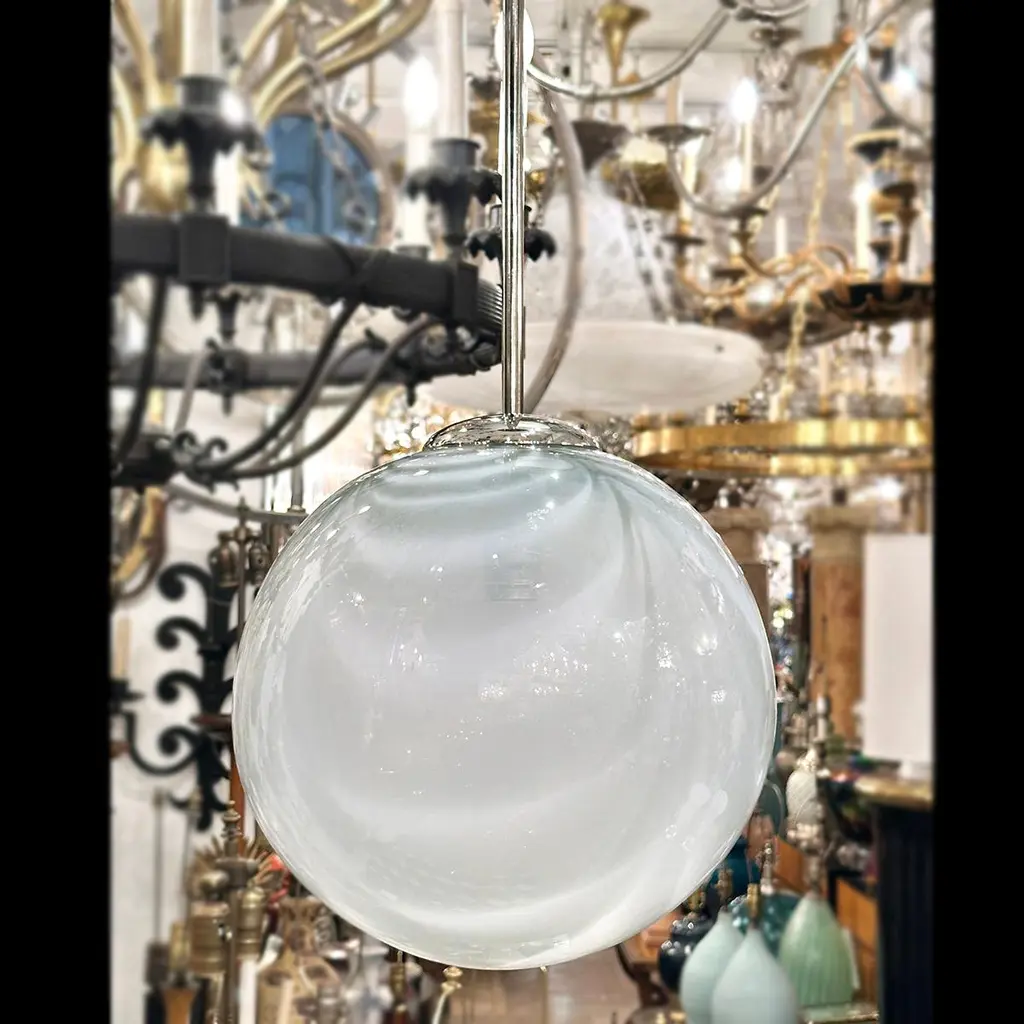 Set of six circa 1960's Italian blown glass globe light fixtures. Sold individually.Measurements:Drop: 24"Diameter: 12"