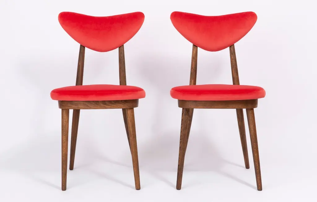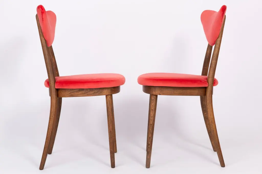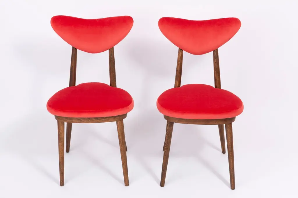 Set Of Eight Red Heart Chairs, Poland, 1960s