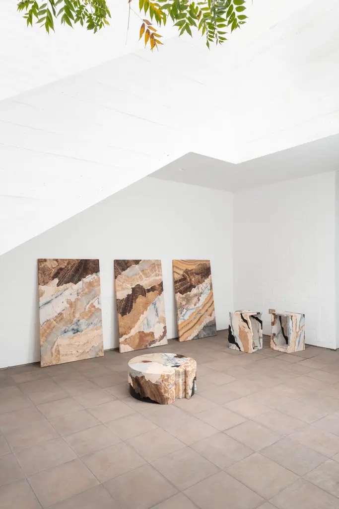 Set of Three Aerial Views of The Andes and Amazon by RF StudioUnique PiecesDimensions: D 3 x W 75 x H 120 cm (each).Materials: Diverse recycled Andes stones.ESTUDIO RF is located in Lima, Peru. We are dedicated to the research of the contemporary Habitat and natural environments in the Peruvian context, seeking to dissolve established limits between them. Our multidisciplinary team is conformed by visual artists, architects, traditional artisans, performers, designers, actors and writers. We regard art as an open field that functions like a hub that establishes new relationships between nature and human activity.We aim to rebuild the continuity between natural landscape, art and architecture by reconnecting the current urban condition with the bodily experience of being free in the wilderness. We acknowledge fluidity and non-definition of the landscape; a wild and dynamic setting were everything coexists without visible hierarchy or law.In opposition, the urban landscape is defined by social codification, segregation and segmentation of space. The values of the global market and technological modernity are creating distance and alienation in everyday life.Faced with this, we return to the heterogeneous, through natural ecosystems, to raw materials, to organic processes and to traditional local Craft; we bring to light its real value, and reestablish contact between these elements and the body.We consider the human being and society not as nucleus, but as part of an ecosystem; a big Community of living organisms. In a society governed by images, noise, artificial light and Industrial materials, we find solace and intimacy in the darkness of the wild environment that meet us through the opaque and warm qualities of the natural shadows surrounding us.We create a balance between visible and palpable, between sound and silence, between Industrial or digital production and natural or artisanal materials. Our goal, beyond ideologies or artistic intent and manifestos, is to reimagine the intimate acts of daily life as a potential means for future transformation.