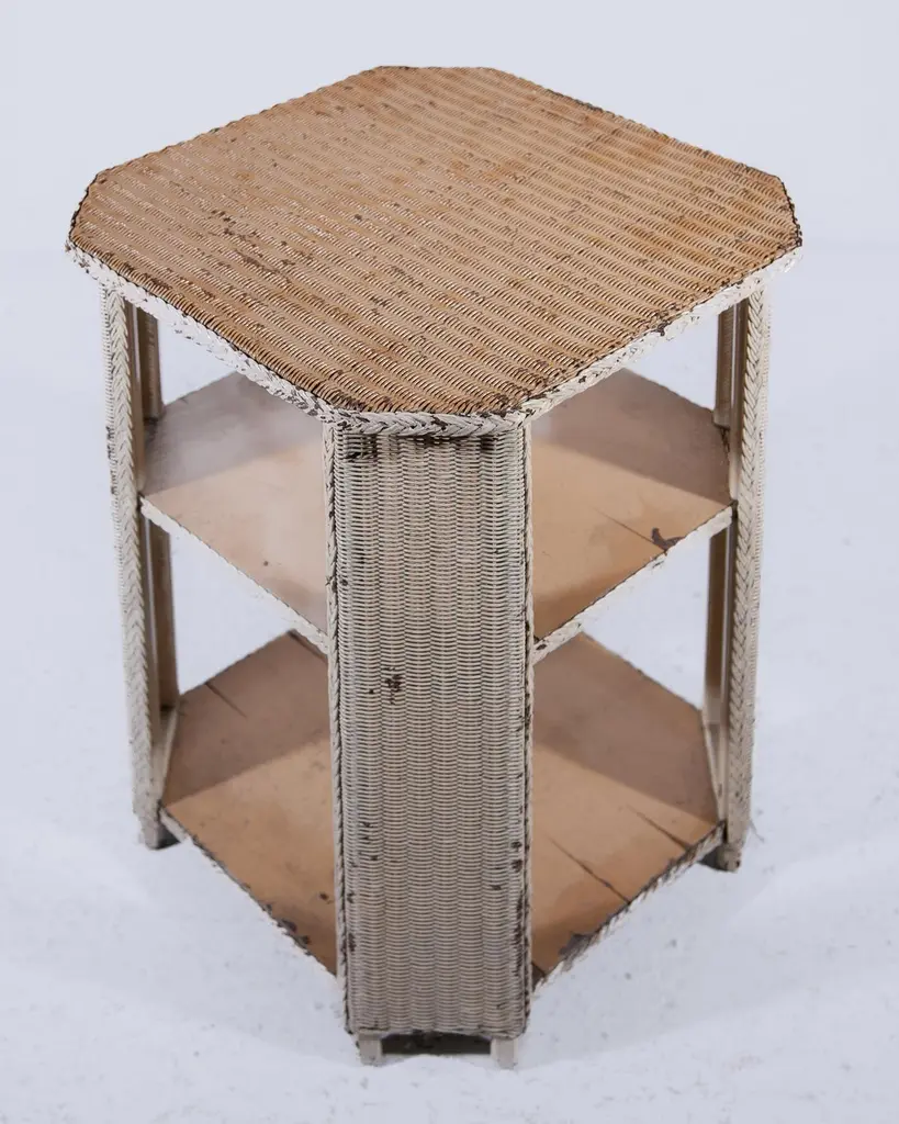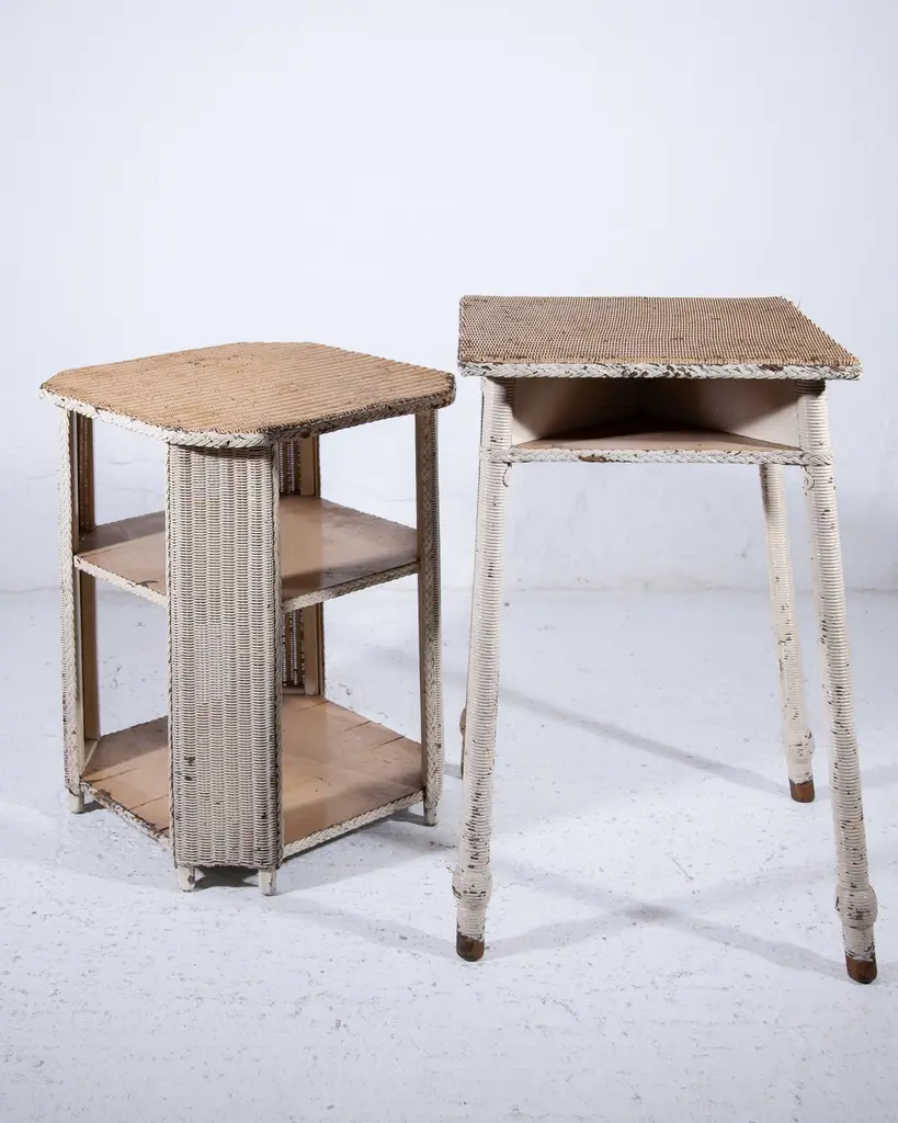 Set Of Two Art Deco Lloyd Loom Tables In Wicker And Wood
