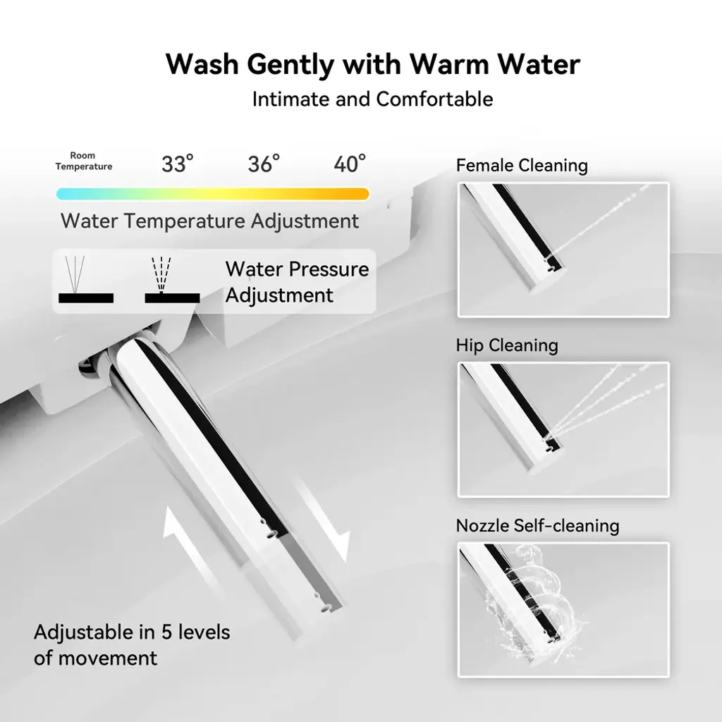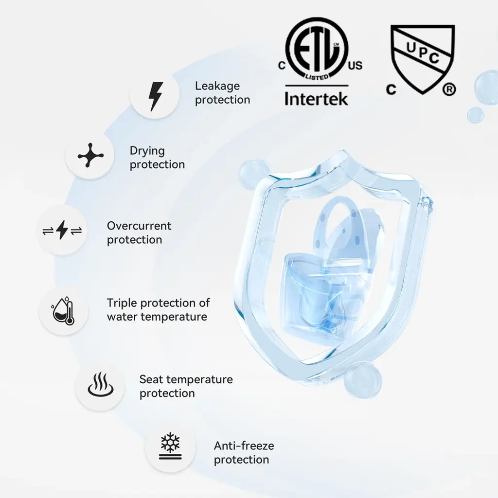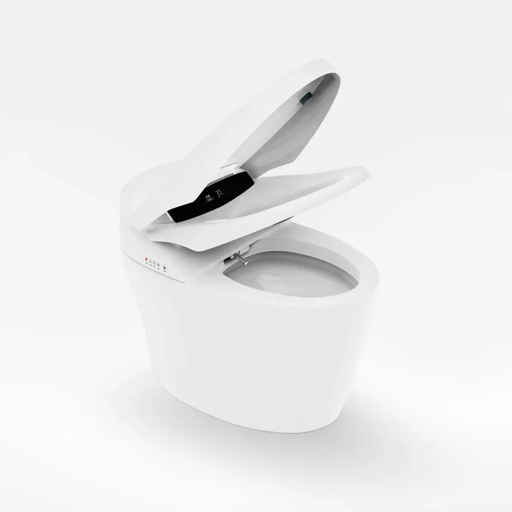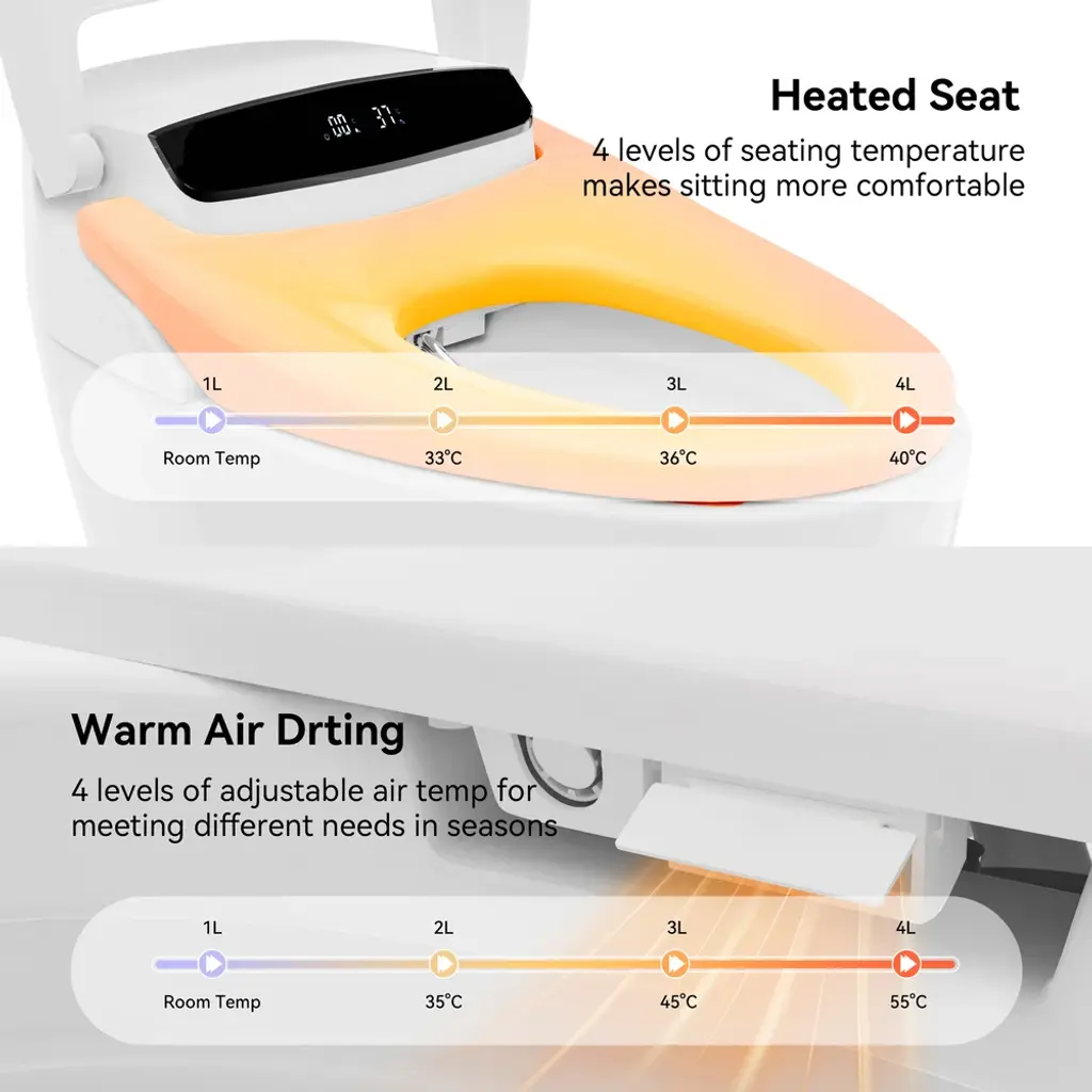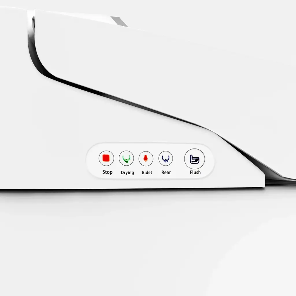 Minimalist modern design: white elongated smart toilet, clean, sleek look and compliment with different styles like modern, craftsman, traditional and etc.