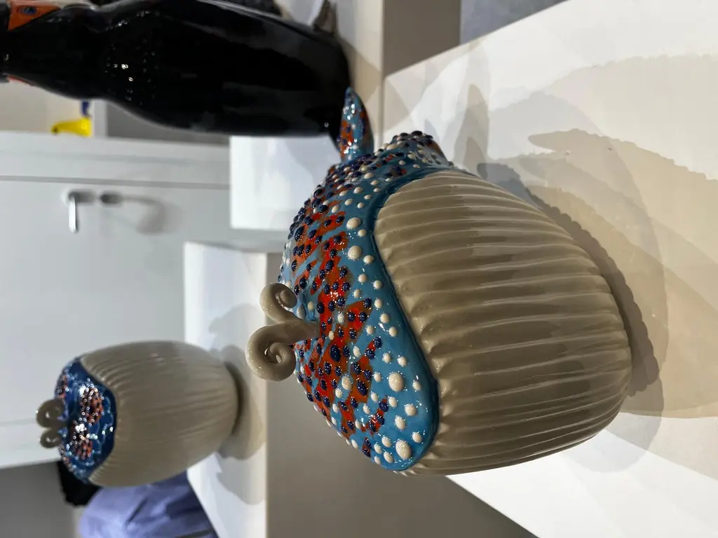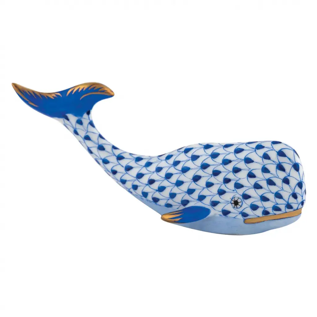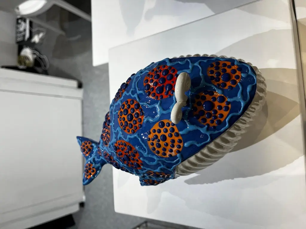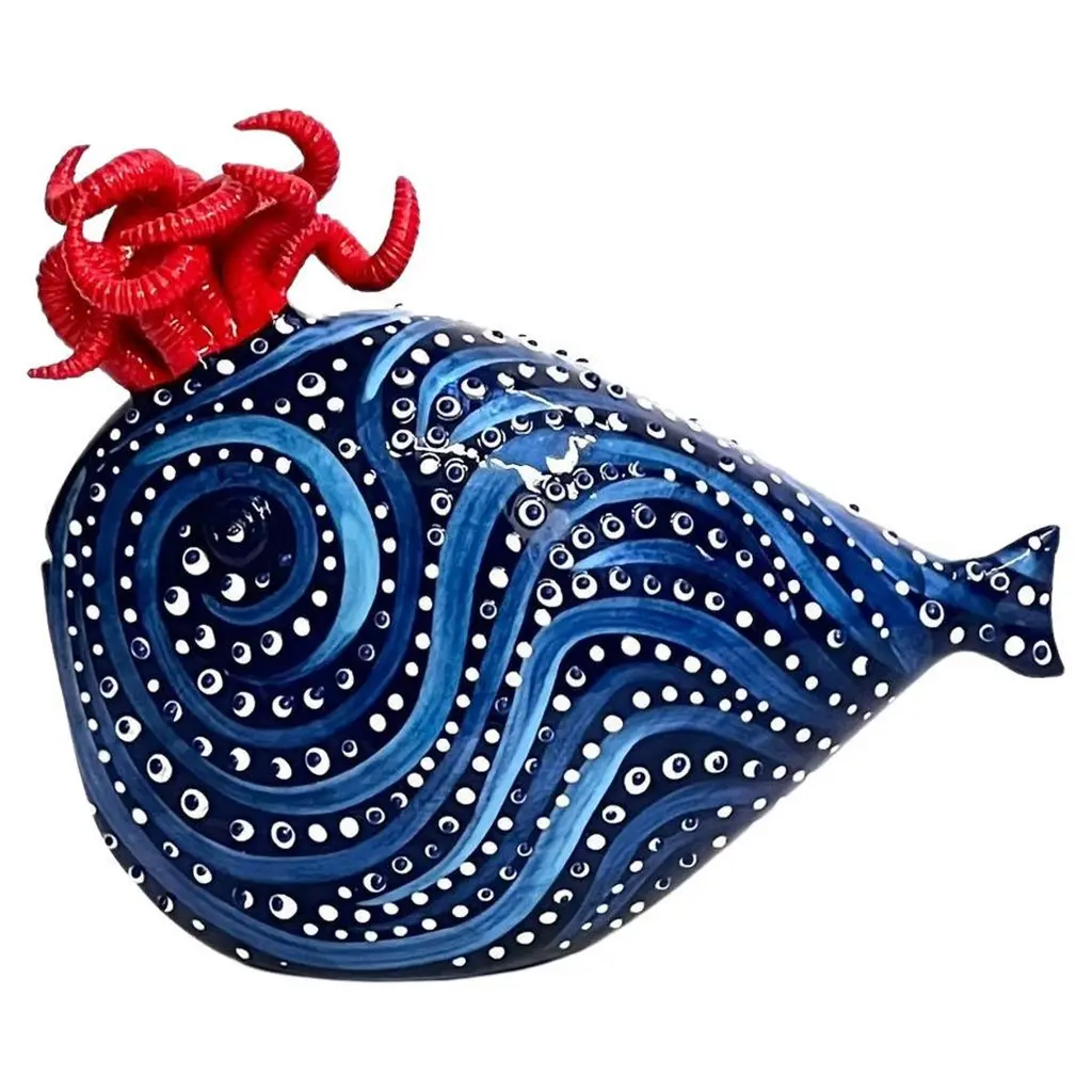 Set Of Two Handmade Whales In Ceramic, Made In Italy, Unique Pieces
