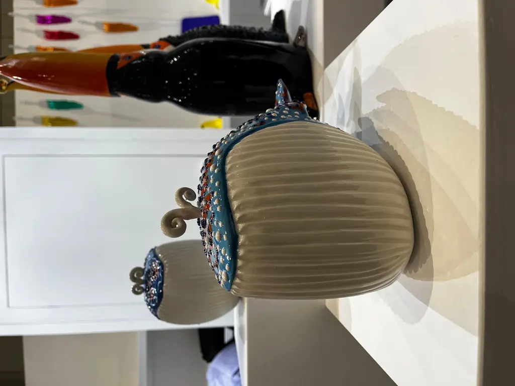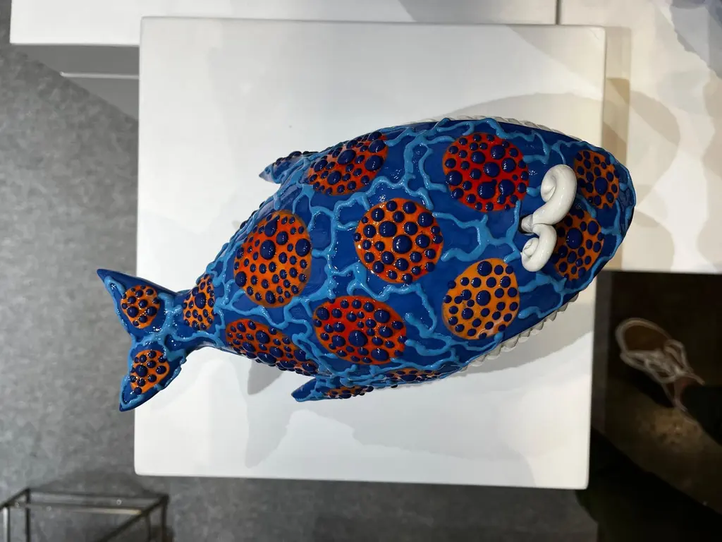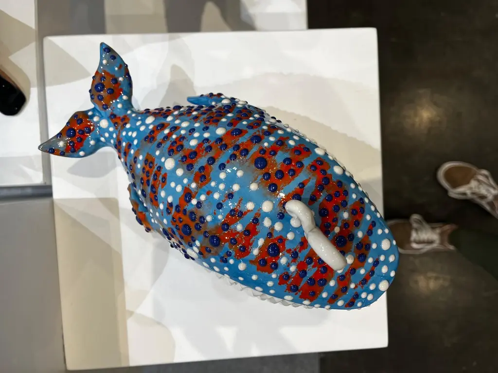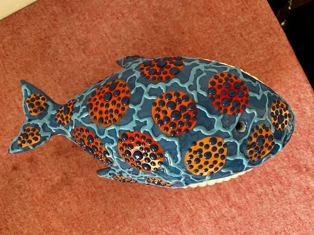 Set Of Two Handmade Whales In Ceramic, Made In Italy, Unique Pieces