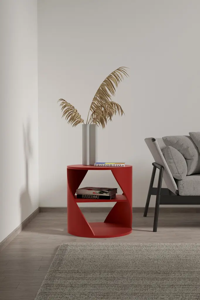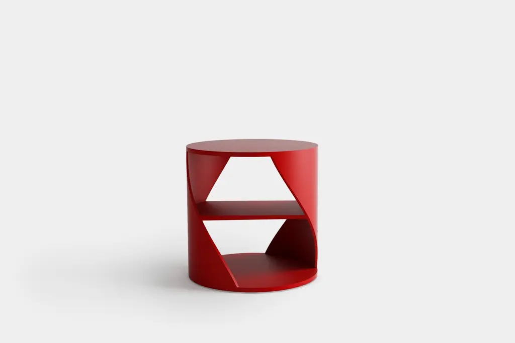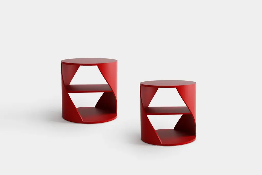 Set of two Red Decorative Nightstand, MYDNA Side Table by Joel EscalonaMYDNA is a chic and contemporary storage system inspired by the DNA concept: both by its sophisticated double helix shape, and by the metaphorical statement that everything you place on it defines a significant part of your personal identity. MYDNA Side Table is part of MYDNA collection designed by Joel Escalona and its fabricated in Mexico City in plywood and heavy-duty fibers.——NONO is a Mexican design brand with more than 10 years of experience dedicated to the production of interior furnishings, editions, and custom-made projects. At NONO, we create pieces of extraordinary beauty, accommodating the particular needs and tastes of each client with exclusive high-quality designs.—Joel Escalona is a Mexican designer, difficult to define with a single word. His constant search for clarity, integrity and harmony led to his development as a designer with an obvious inclination towards visual arts, such as painting and sculpture. Joel’s work is characterized by thorough and elegant processes, sometimes creative, other times productive and on occasion, a bit introspective. In his work, it is possible to find glimpses of his charismatic and ironic personality, resorting to elements such as lyric, humor and poetry as attributes that are in constant connection throughout his body of work.————Some details to consider when placing an order with us:• Catalog images are digitally generated. Actual products may slightly vary in texture, grain, and final finish due to natural material differences. Despite these variations, our expertise ensures each piece maintains high quality and matches the intended design.• All of our products are made to order, and the lead time for standard products is estimated to be 9 to 12 weeks, plus shipping time. However, special pieces or sculptures may require a longer lead time.• We offer customization in dimensions and finish for all of our furniture pieces, which may result in additional charges.• We only facilitate freight services by a third party. The client is solely responsible for any associated import/export taxes, as well as any necessary customs paperwork.• We are not responsible for any damages that may occur during shipping or for any customs-related delays.
