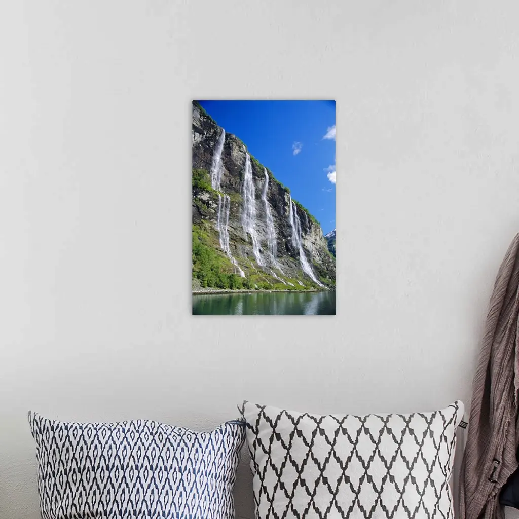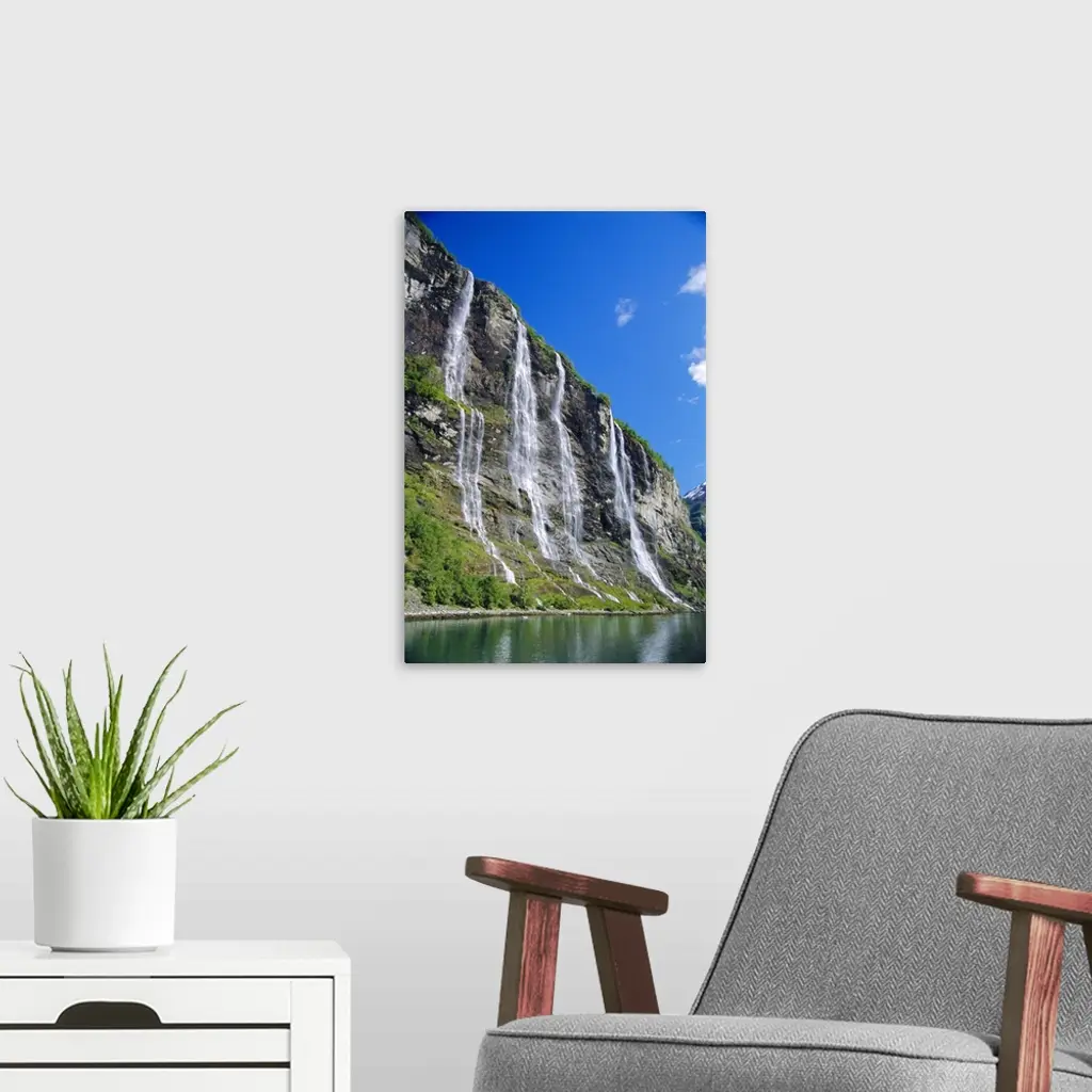 Seven Sisters Falls as seen from ferry, Geiranger Fjord, Norway wall art for home and office decor. Discover canvas art prints, photos, mural, big canvas art and framed wall art in GreatBigCanvas.com's varied collections.