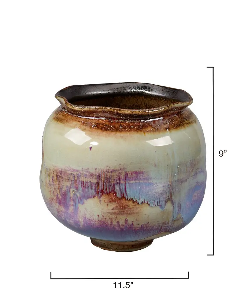 Individually crafted by master artisans, each of these ceramic vessels features softly rounded and dimpled shapes. Layers of glazes are applied using a technique that reacts uniquely on each piece, ensuring that no two are completely identical. Their warmth and beauty complement a variety of fillers—try similar shades like feathers and reeds, or add brighter contrasting colors like florals and greenery.