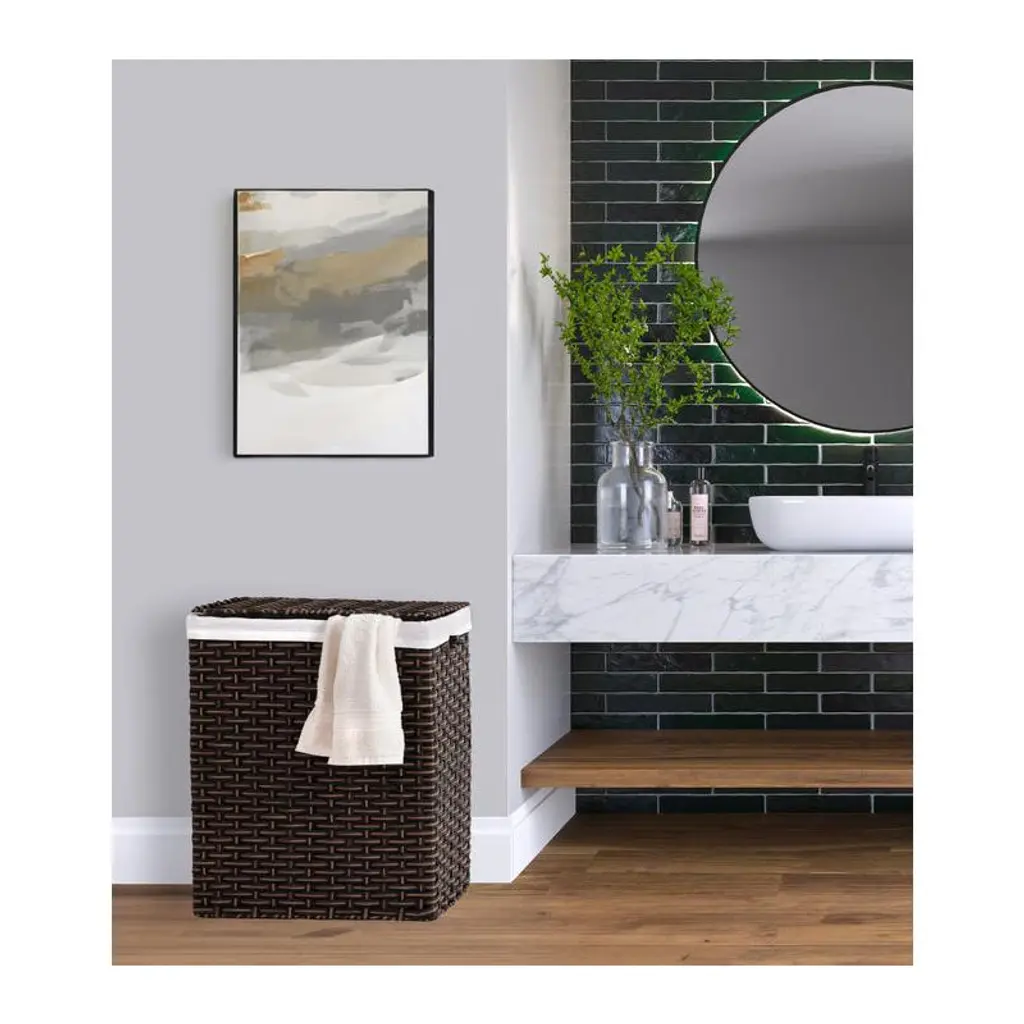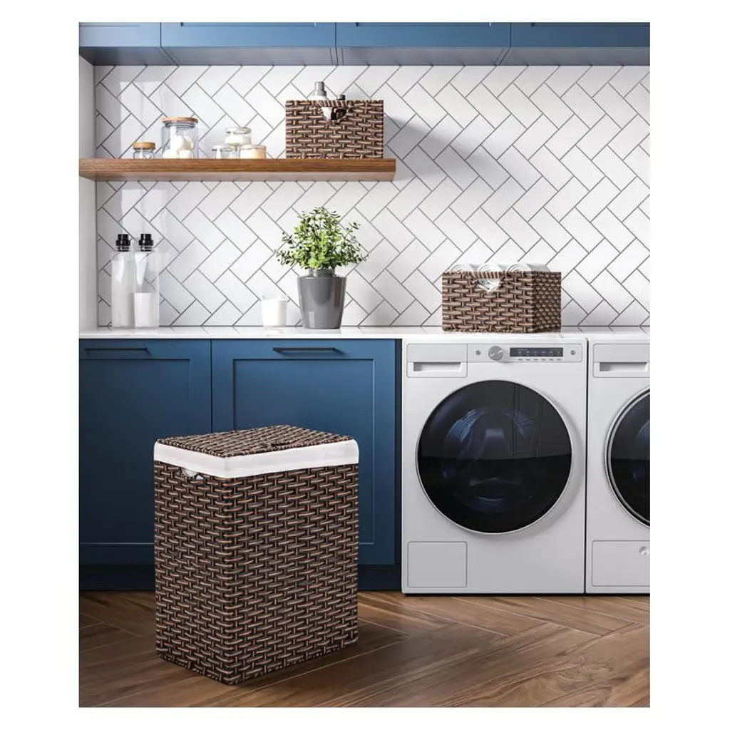 Seville Classics Modern Handwoven Lidded Rectangle Laundry Room Hamper With Liner, Mocha