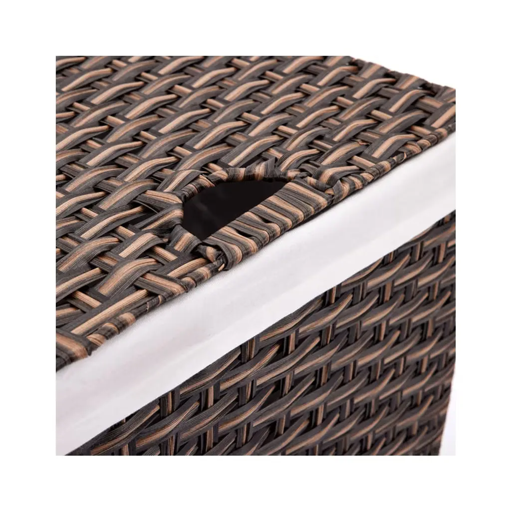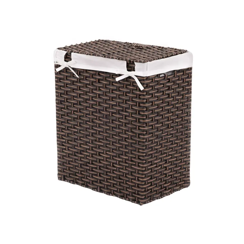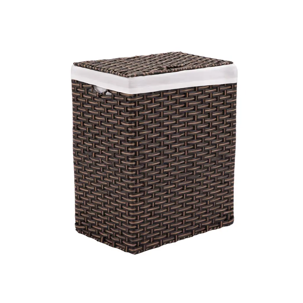 Seville Classics Handwoven Rectangular Lidded Laundry Hamper is a stylish and practical way to store laundry. The handwoven rectangular lidded hamper includes removable bag liners (100% polyester). Made from woven synthetic strands wrapped around a study steel frame. Uniquely handwoven by local artisans, so there may be slight variations in size and imperfections. The rectangle hamper features a thick, removable, and machine washable canvas liner, making it easy to transport your laundry. The hamper features two cut-out handles for easy carrying.