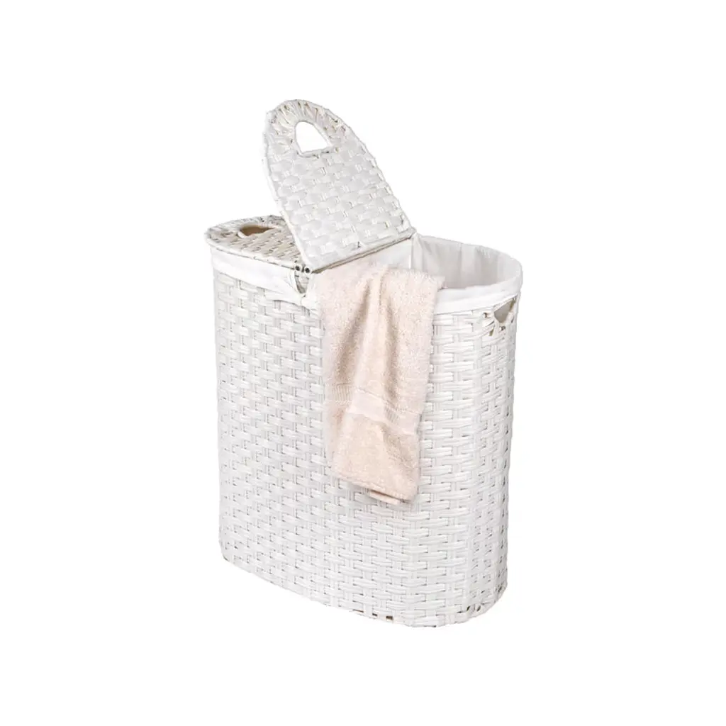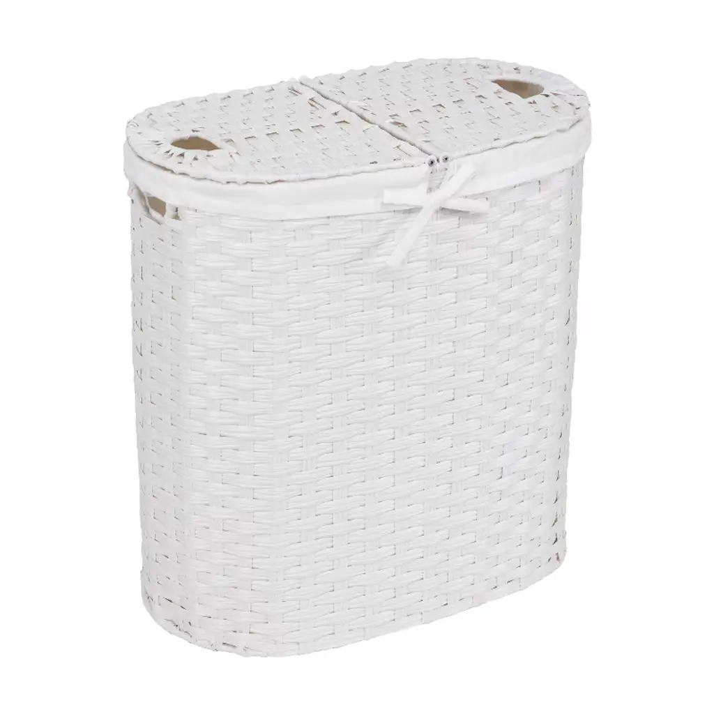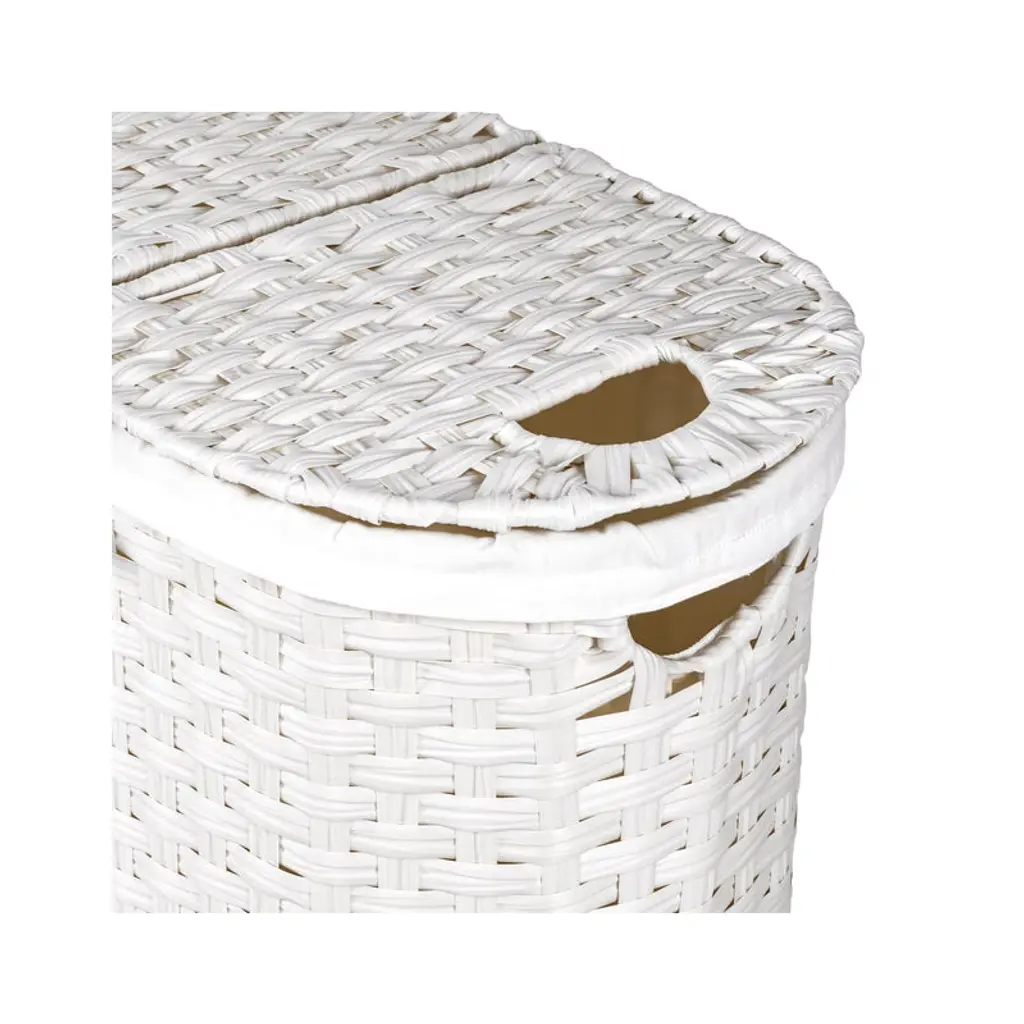 Seville Classics Modern Handwoven Oval Double Sided Laundry Room Hamper, White