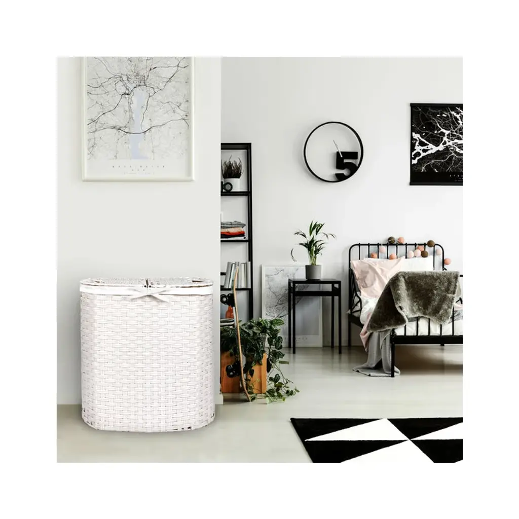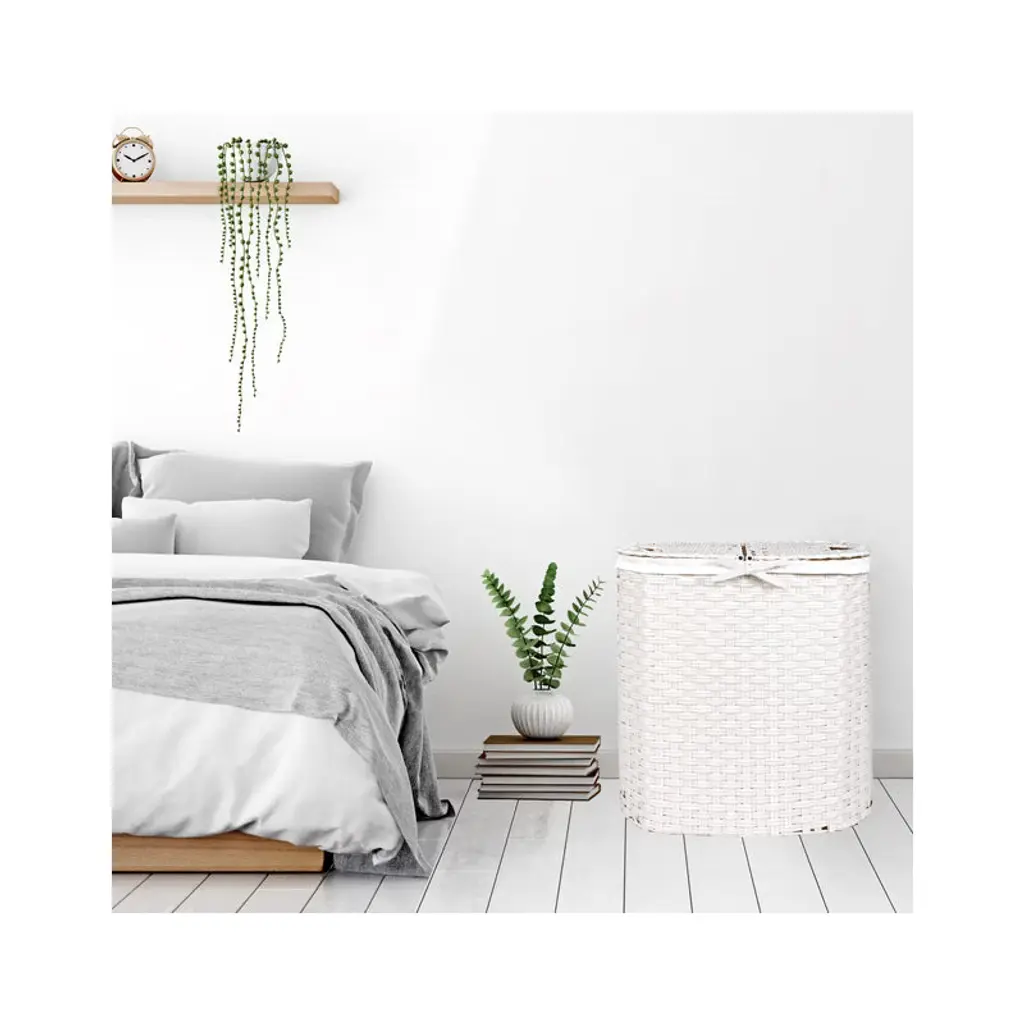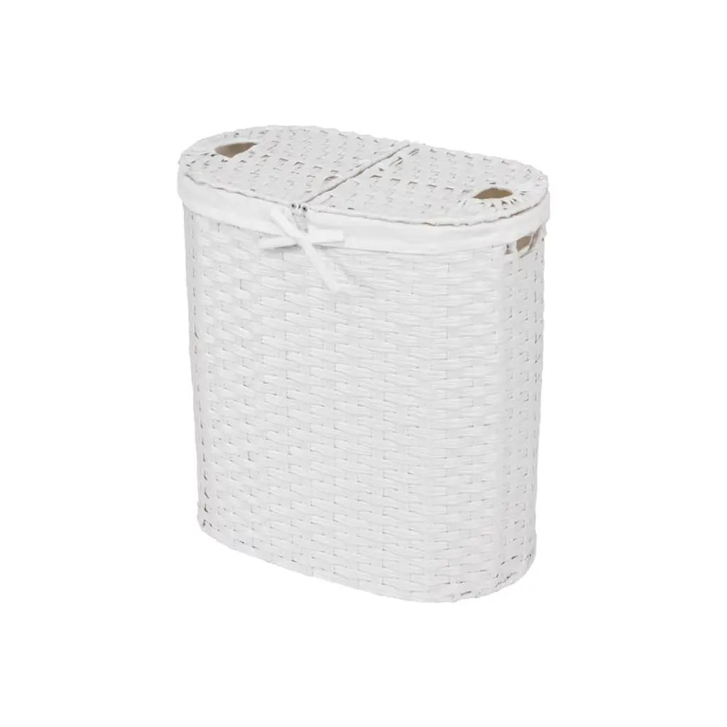 Seville Classics Modern Handwoven Oval Double Sided Laundry Room Hamper, White
