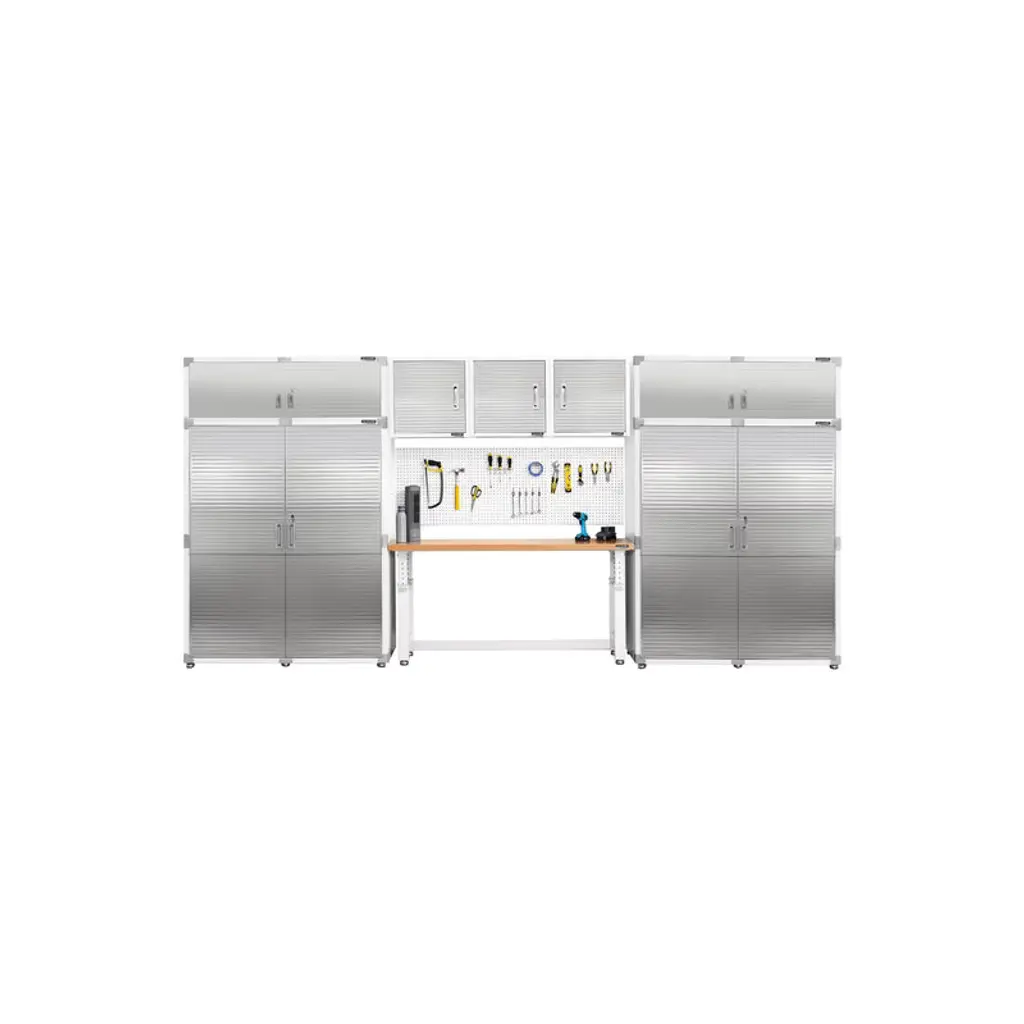 Build the perfect workshop for your home or business with Seville Classics UltraHD 2-Piece Extra-Wide Mega Storage Cabinet with Stacker Set. This set includes one UltraHD Extra-Wide Mega Storage Cabinet and one UltraHD Extra-Wide Mega Stacking Top Cabinet that will add even more storing space for the cabinet. This set is sure to create a custom and yet professional look and feel to any workspace, whether you need it for work or have a hobby that needs a complete storage solution.