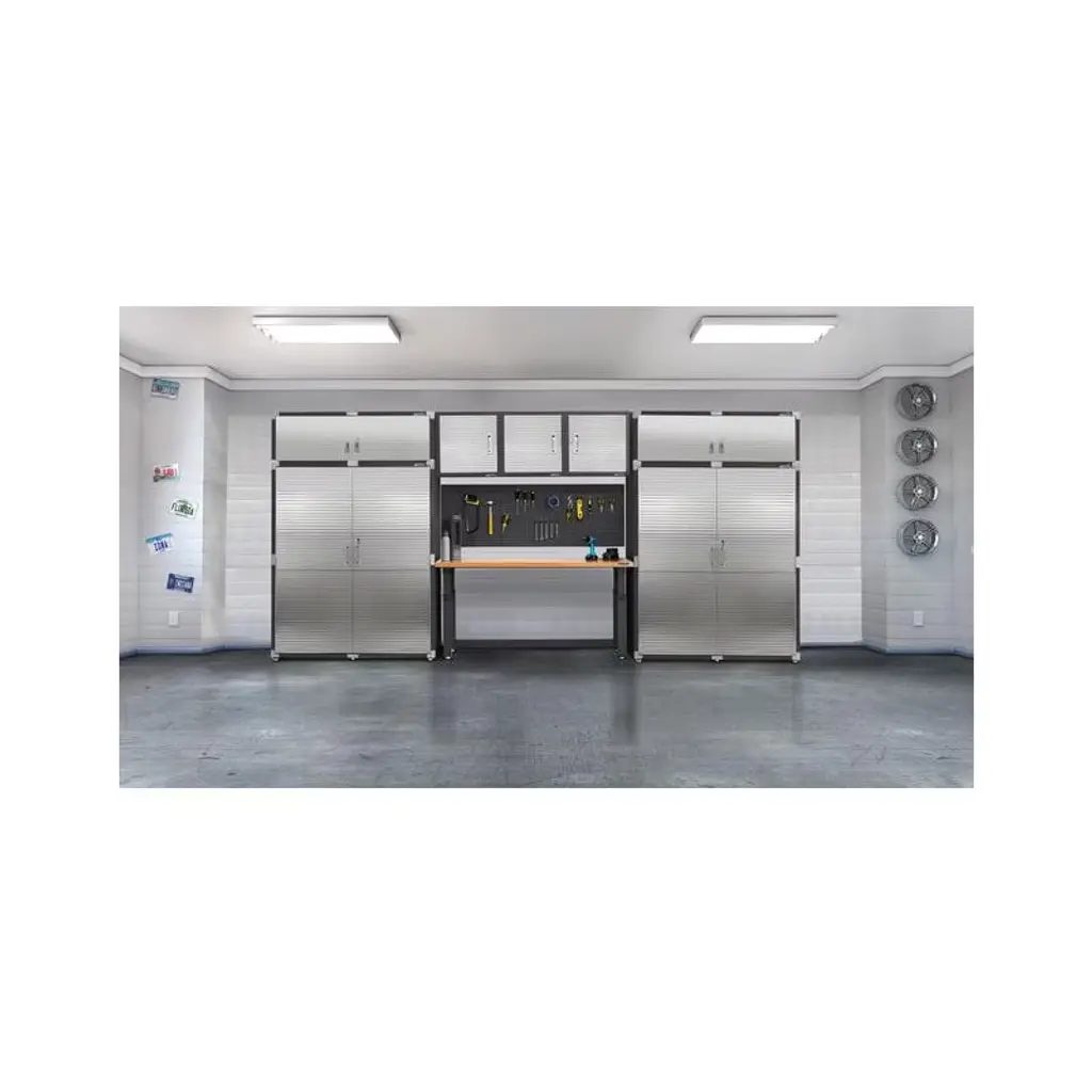 Build the perfect workshop for your home or business with Seville Classics UltraHD 2-Piece Extra-Wide Mega Storage Cabinet with Stacker Set. This set includes one UltraHD Extra-Wide Mega Storage Cabinet and one UltraHD Extra-Wide Mega Stacking Top Cabinet that will add even more storing space for the cabinet. This set is sure to create a custom and yet professional look and feel to any workspace, whether you need it for work or have a hobby that needs a complete storage solution.