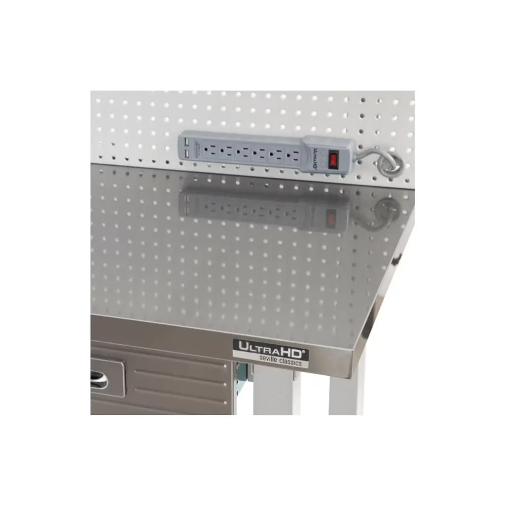 Seville Classics Ultrahd Lighted Workcenter W/ Stainless Steel Top And Pegboard, Granite