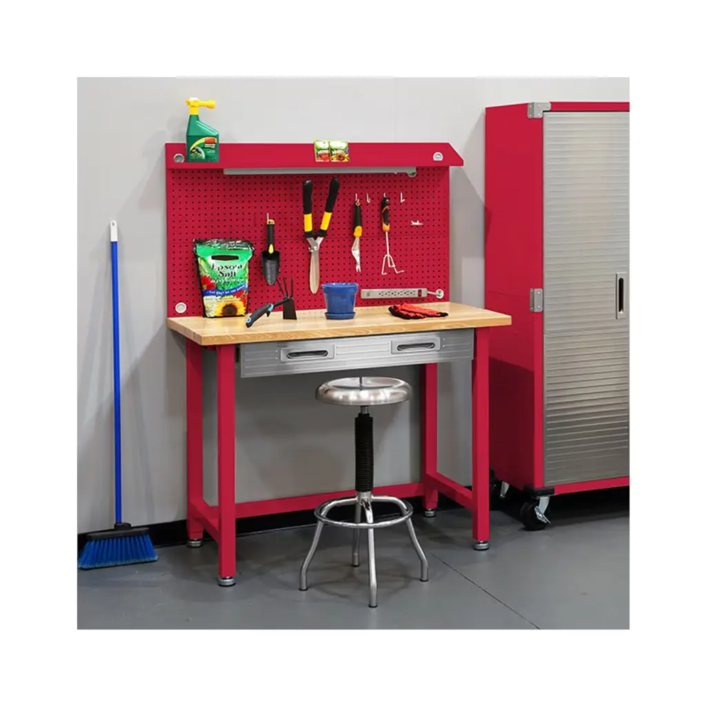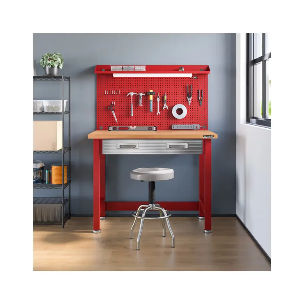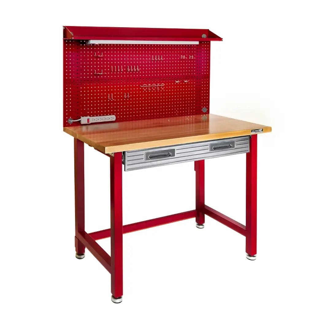 Seville Classics Ultrahd Lighted Workcenter W/ Wood Top And Pegboard, Red