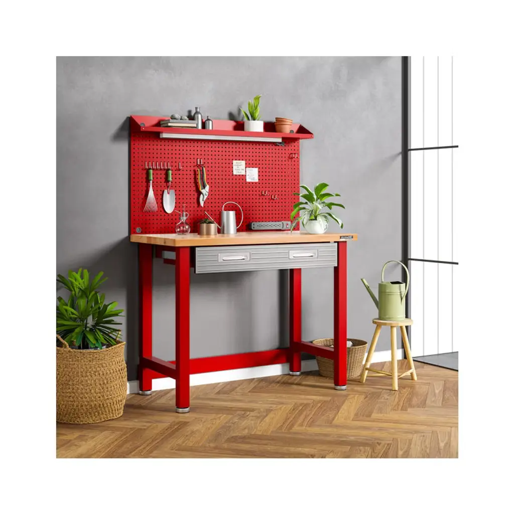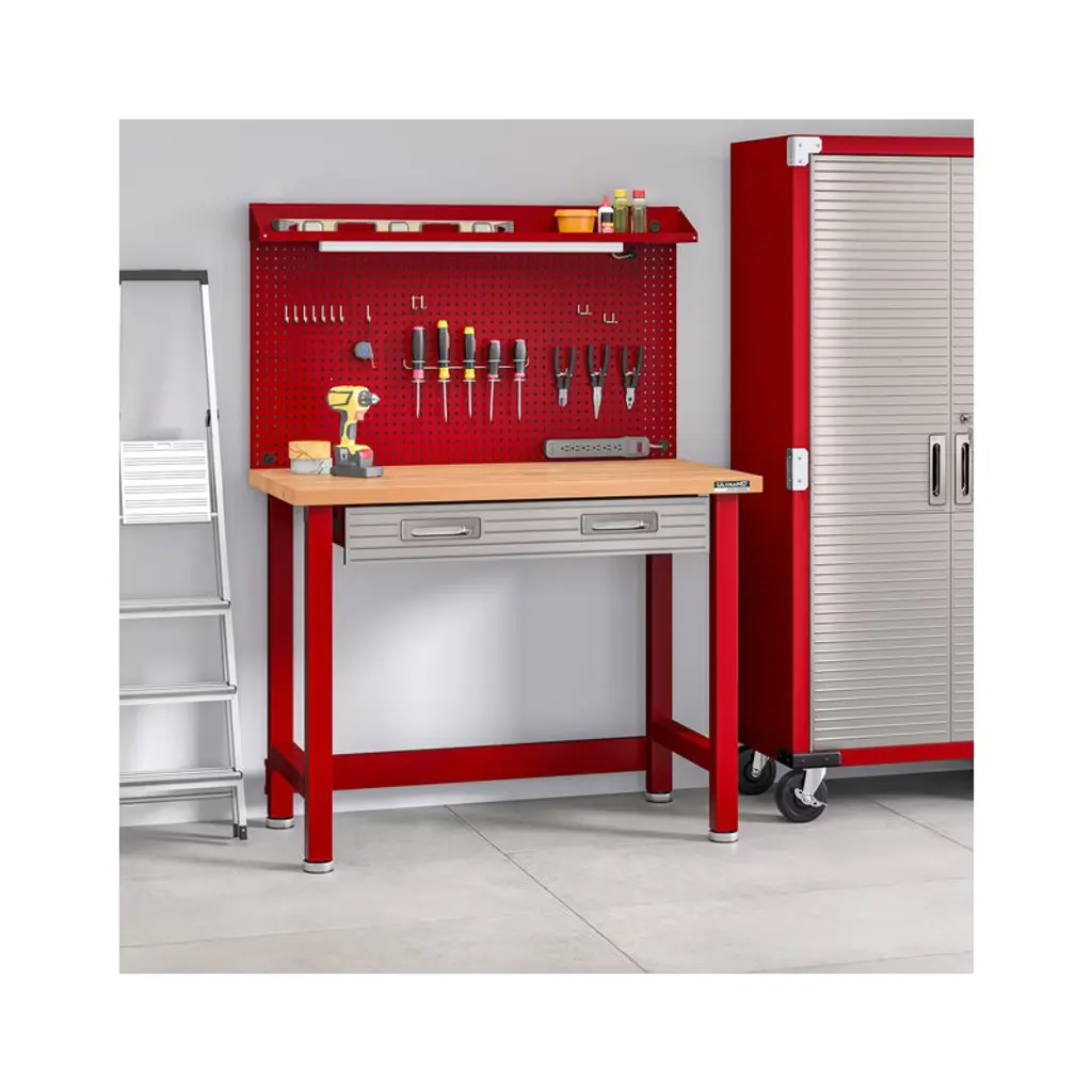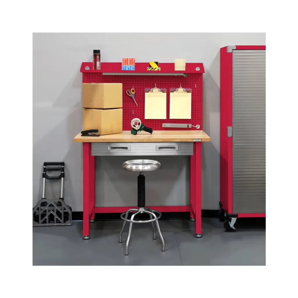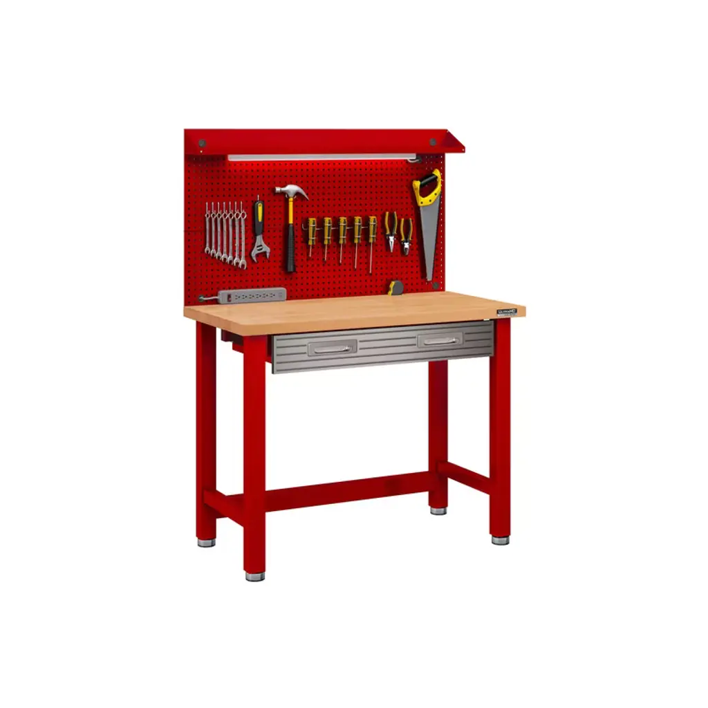 Seville Classics Ultrahd Lighted Workcenter W/ Wood Top And Pegboard, Red