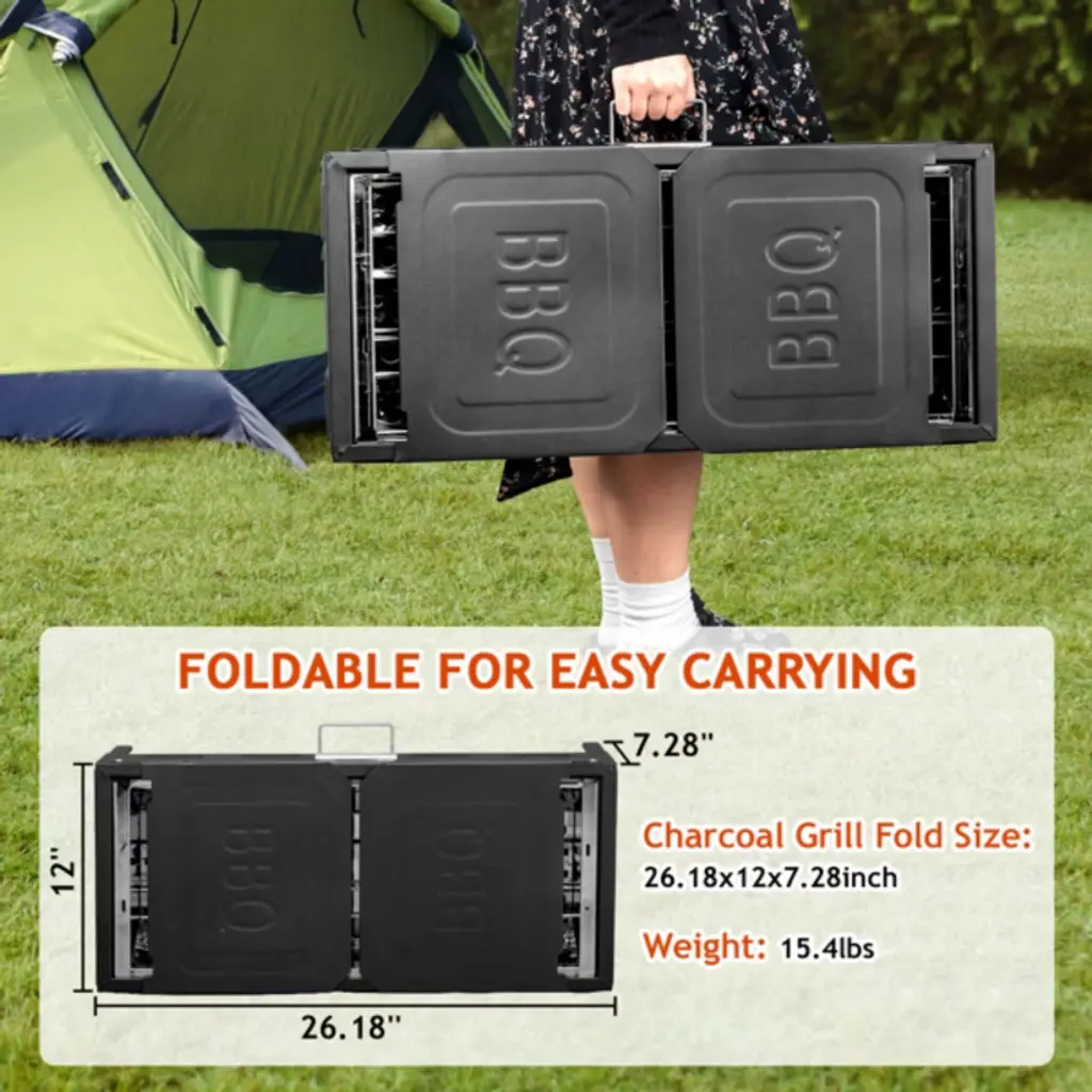 SEVOBAL innovative portable charcoal grill combines a stainless steel cooking grate with a non-stick enamel pan for versatile outdoor meals. The adjustable height and foldable design make it perfect for camping trips, picnics or backyard barbecues. Featuring efficient charcoal use and convenient storage options, it simplifies outdoor cooking while delivering professional results. The compact folding design and included carry bag ensure easy transportation to your favorite outdoor destinations.
