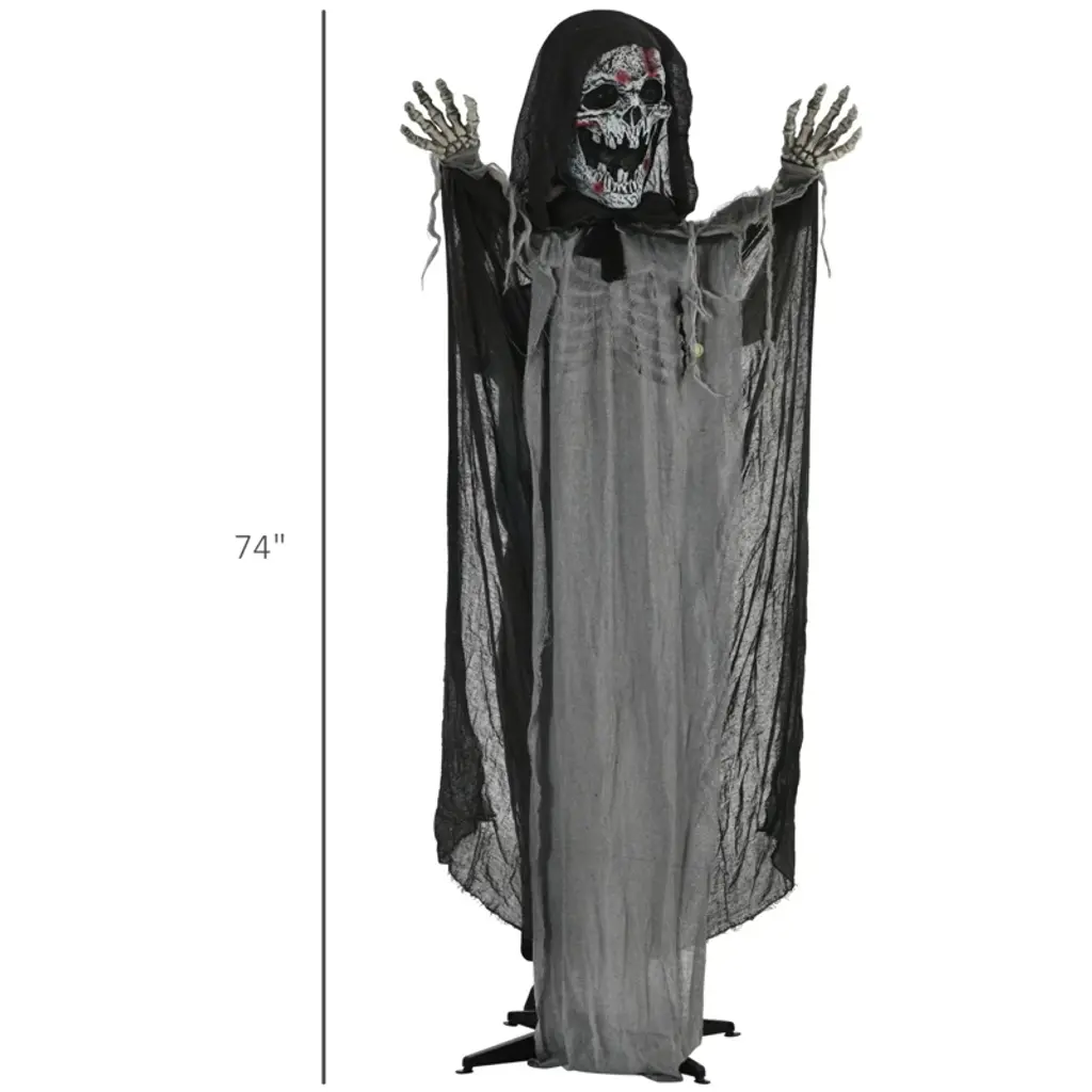Sevobal Party Decorations And Accessories 74' Animated Skeleton Witch Prop Sound Motion Activation Haunted Decoration, Gray, 59.1"*6.8"*74"