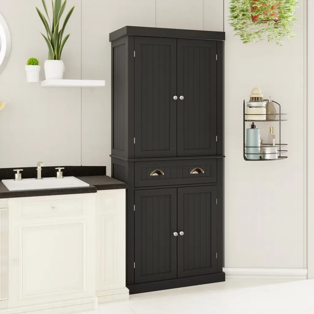 Sevobal Utility Storage Cabinets, Freestanding Cabinet With Adjustable Shelves, Closed Storage For Living Room Kitchen, Black, 76"*39.8"*181.9"