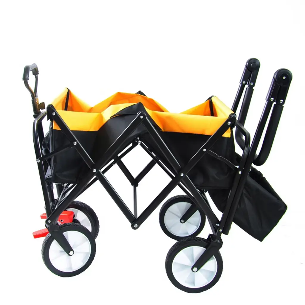 Sevobal Utility Storage Cart Compact Portable Outdoor Multi-purpose Tool Vehicle, With Cup Holder And Adjustable Handle, Yellow, 53.50"*20.08"*42.52"