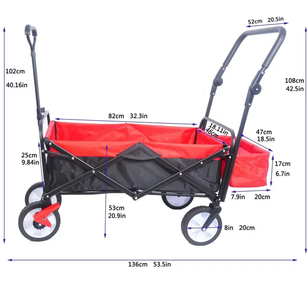 Sevobal Utility Storage Cart Foldable Handcart Outdoor Multi-functional Portable Tool Cart Adjustable Handle, Black And Red, 53.50"*20.10"*42.52"
