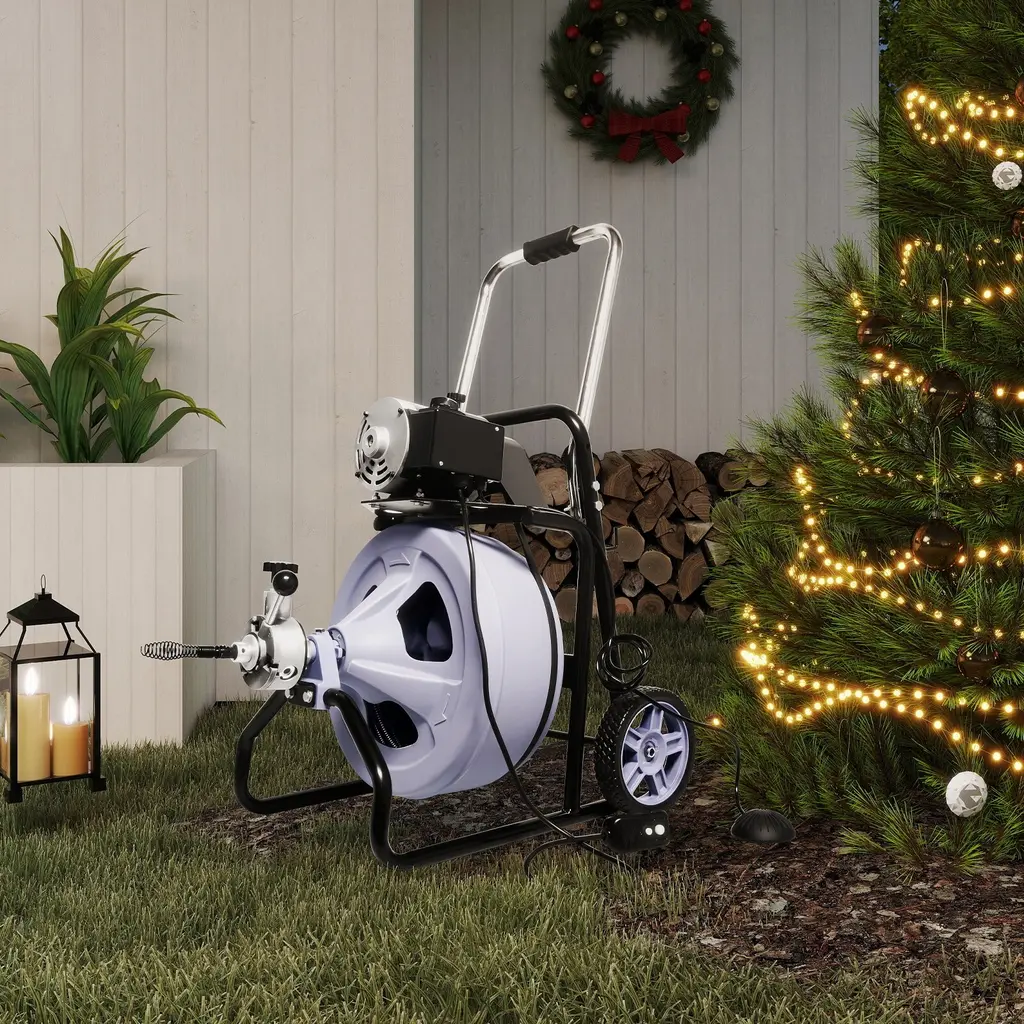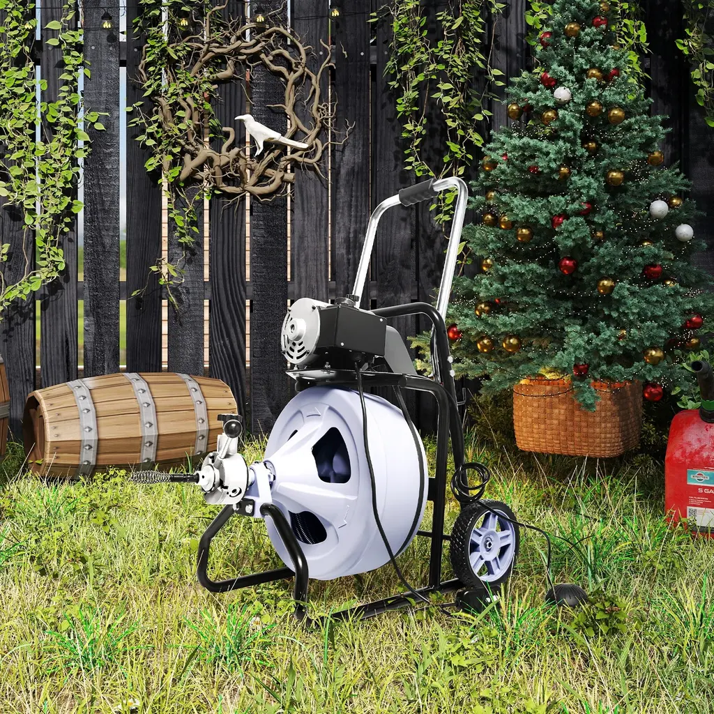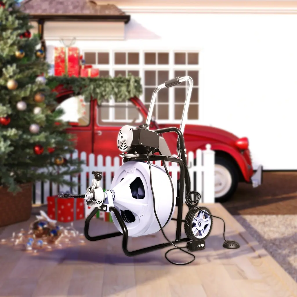 Sewer Cleaner 75ft X 1/2 Lnch, Auto Feed Sewer Drainer (W/wheels) W/ 8 Cutters & Pneumatic Footswitch For 2" To 4" Pipe - N/a - Off White