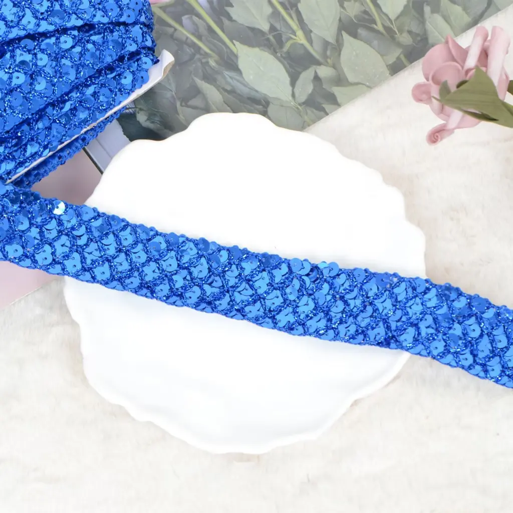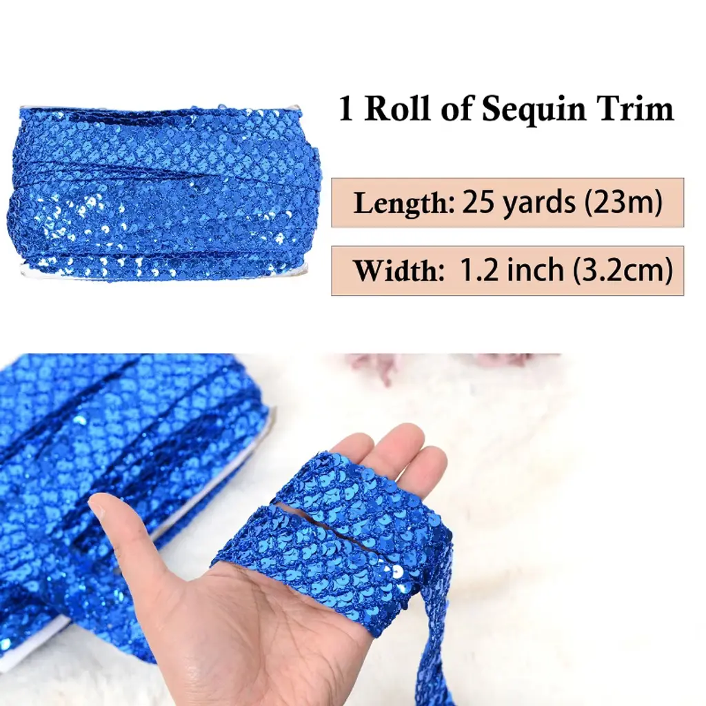 Sewing Sequin Trim 1.2 Inch 6 Row, 25 Yards Glitter Sequin Strip Ribbon Metallic Stretch Bling Fabric Diy Craft Decoration, Royal Blue