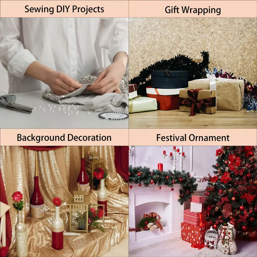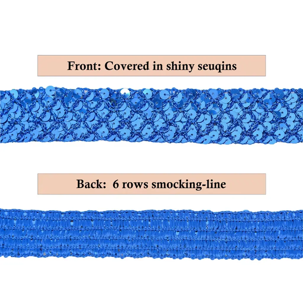 This wide glitter sequin ribbon strip is designed to add a dazzling touch of elegance. Great for embellishing wedding dresses, creating stunning headbands, and decorating costumes for special occasions like Christmas, Halloween, and New Year’s parties.The metallic stretch sequin strip features a flat paillette design that ensures easy application, whether you're sewing it onto fabric or using it for gift packaging. Its wide, glittery surface provides extensive coverage and a luxurious look, while its stretchy nature makes it versatile for various DIY craft decorations.