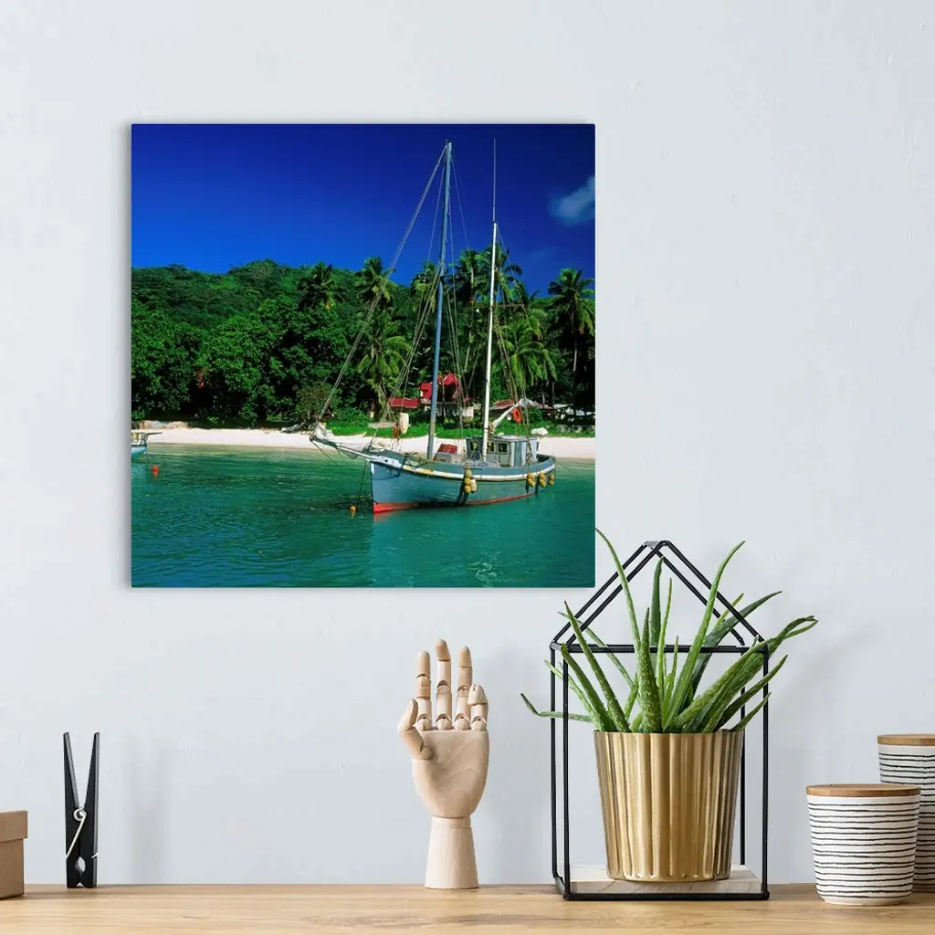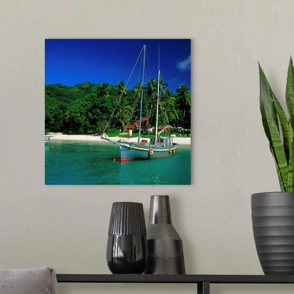Seychelles, La Digue, sailing boat in the small harbor wall art for home and office decor. Discover canvas art prints, photos, mural, big canvas art and framed wall art in GreatBigCanvas.com's varied collections.