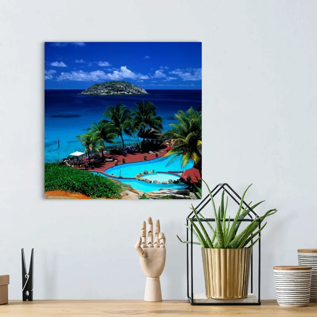 Seychelles, Mahe, Grand Anse, Equator Grand Anse Residence Hotel wall art for home and office decor. Discover canvas art prints, photos, mural, big canvas art and framed wall art in GreatBigCanvas.com's varied collections.