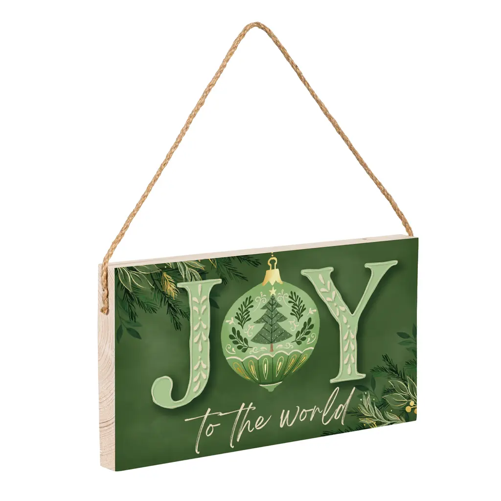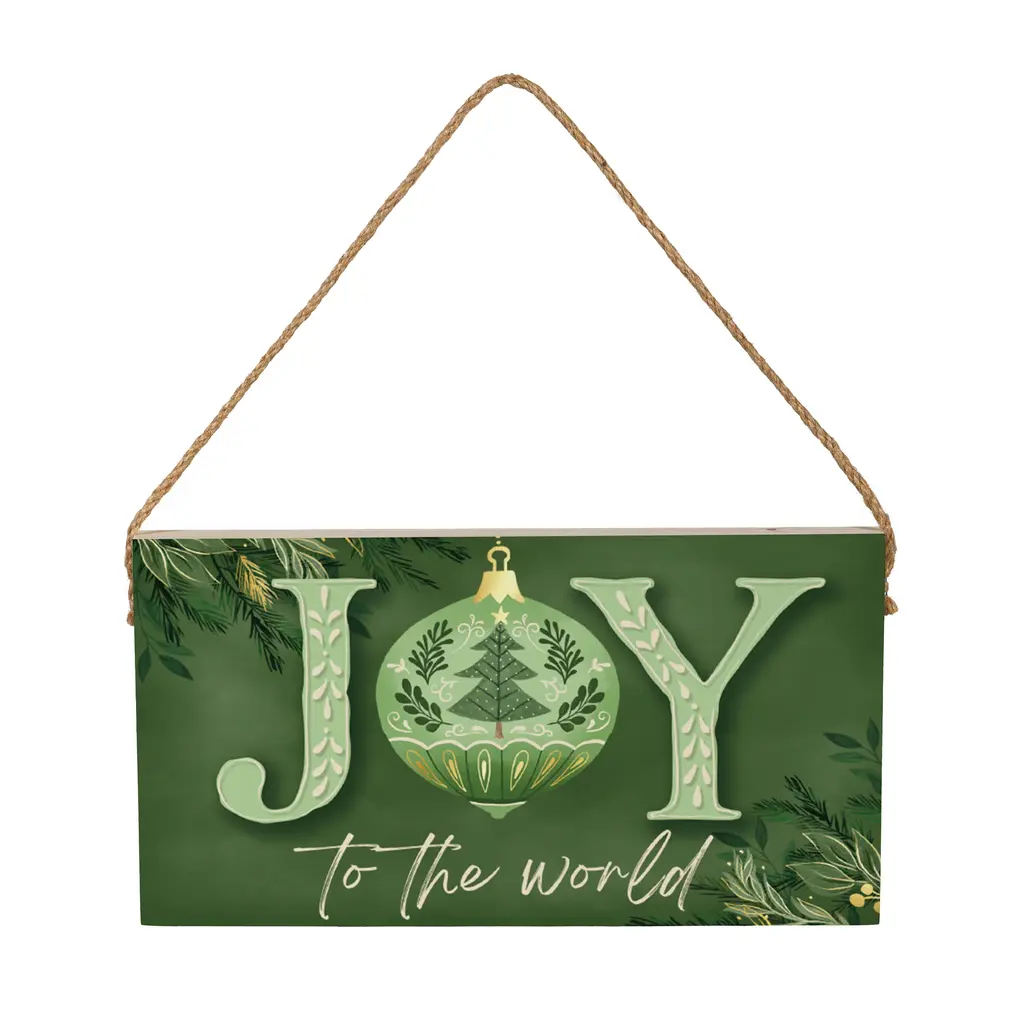 Shades Of Emerald Hanging Sign, "Joy To The World", 11"x6”