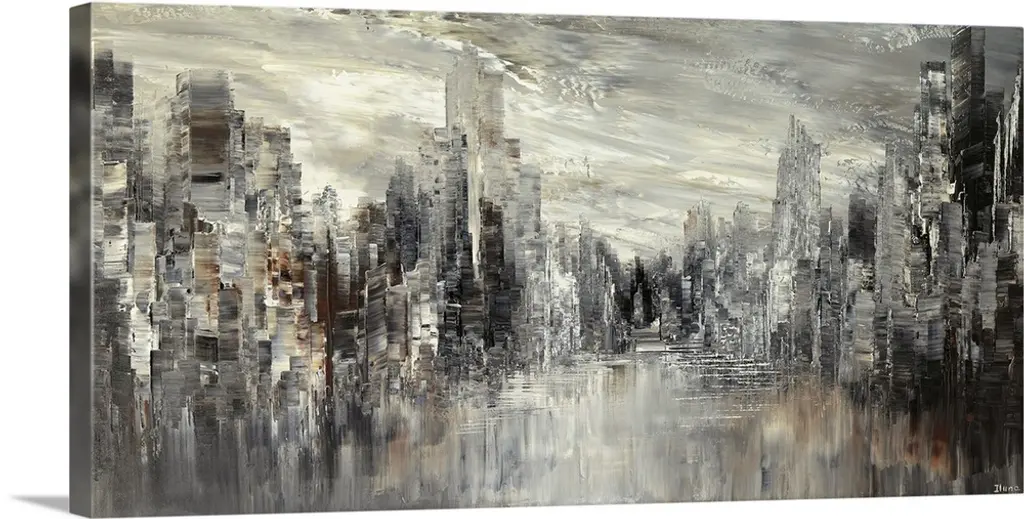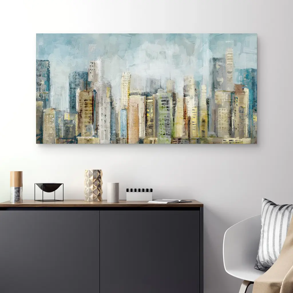 Nothing helps establish a room's feel like decorative accents, and this Shadows from the Skyscraper canvas wall art accomplishes just that.