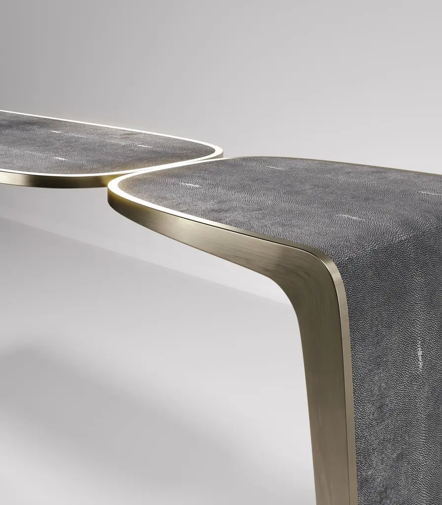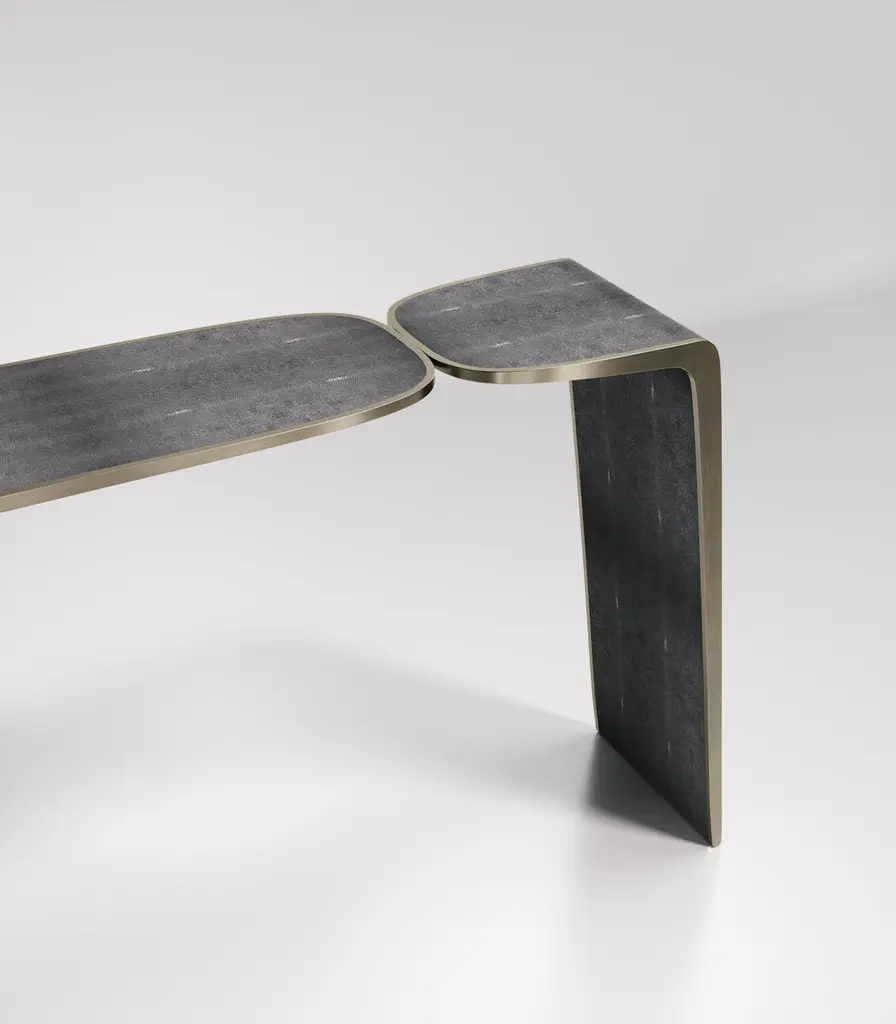 Shagreen Console With Bronze Patina Brass Details By Kifu Paris