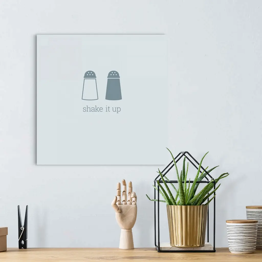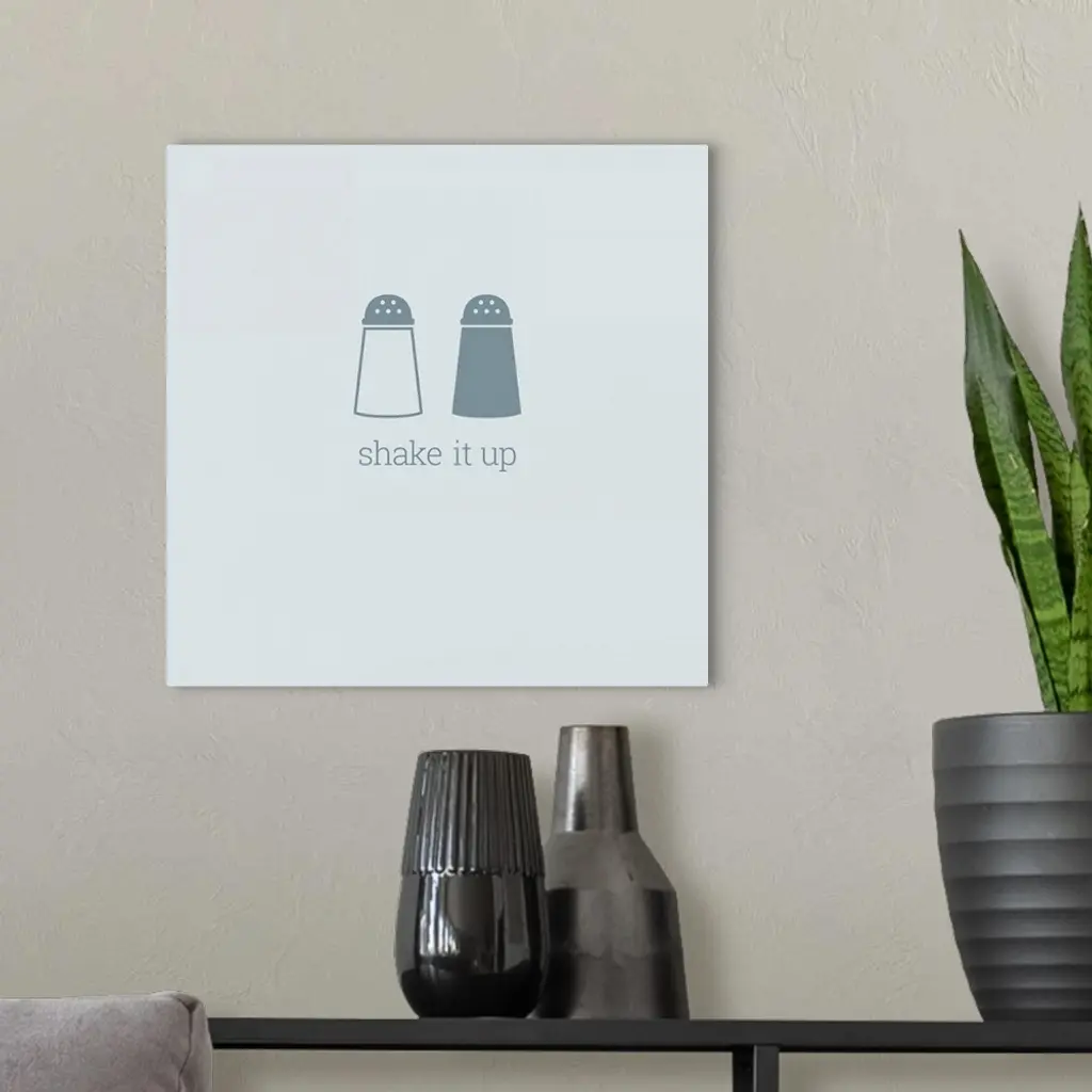 Minimalist kitchen art with a retro vibe, combining everyday phrases with kitchen tools and food.