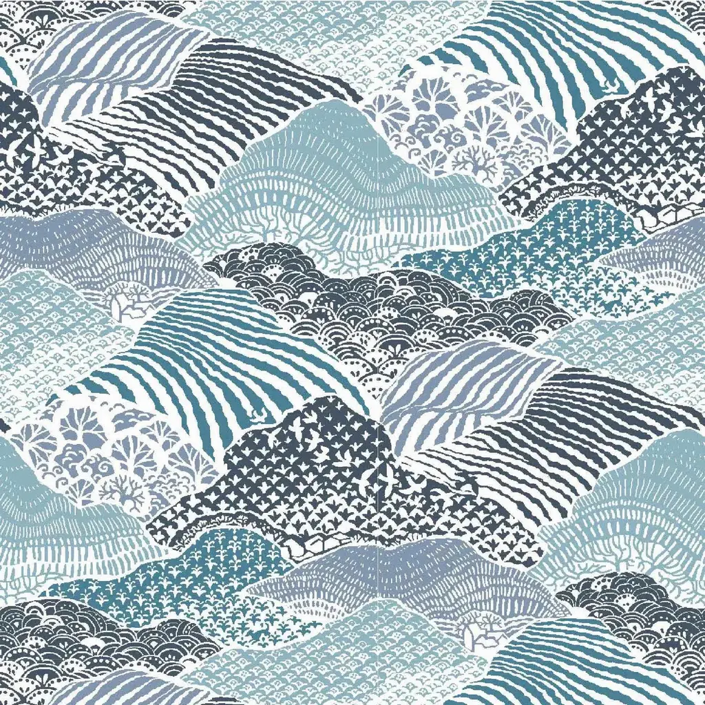 Shangri-La All Over Blue Fabric By The Yard