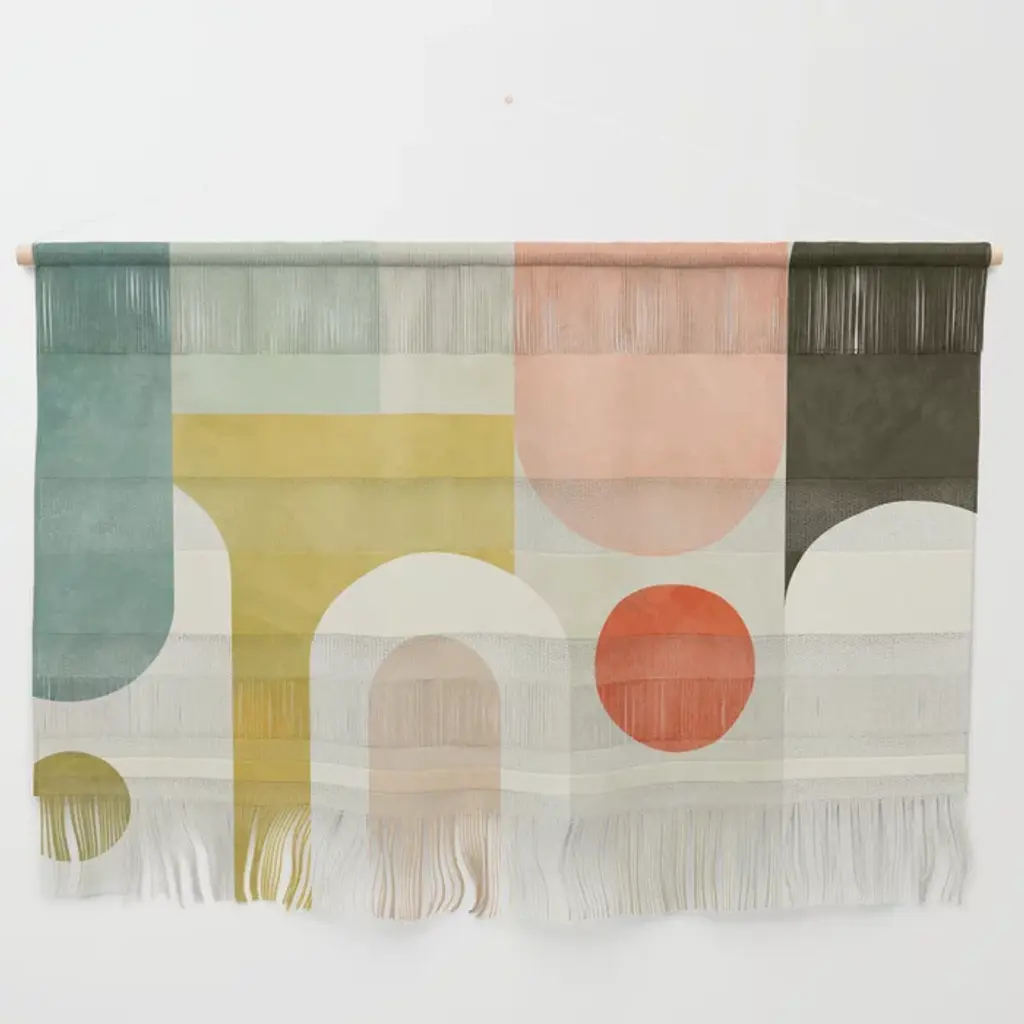 Shapes Modern Mid-Century Peach Pink Coral Mint Wall Hanging