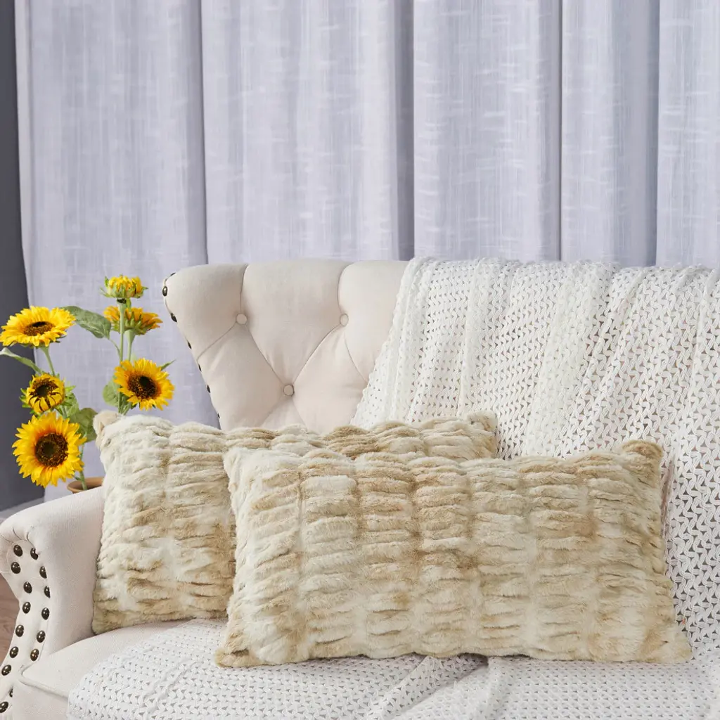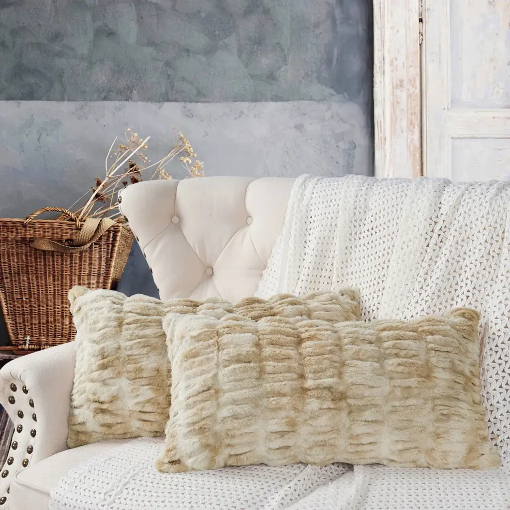 Shar Pei Faux Fur Pillow Shell Set, Fungi, 2 Piece Lumbar, 14"x26"