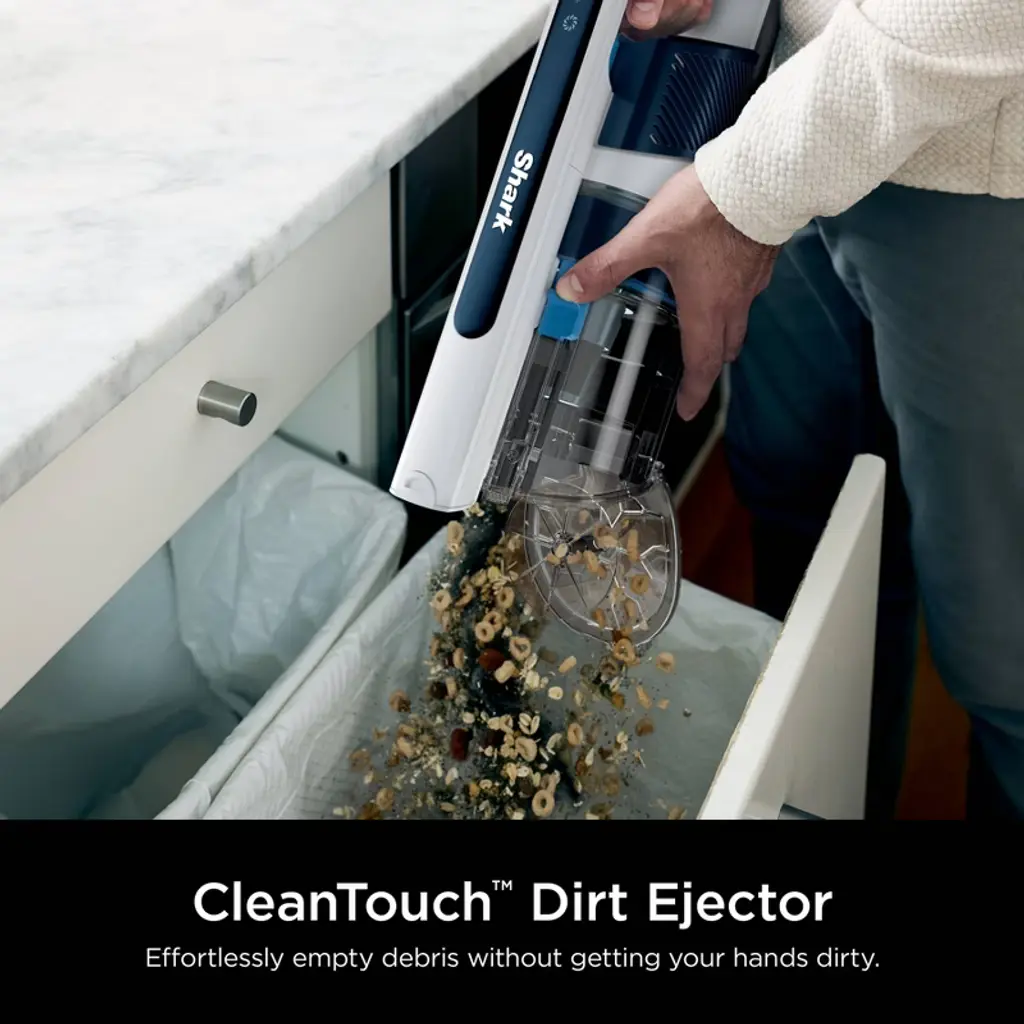 The Shark® PowerPro™ Flex Pet combines powerful debris and pet hair pickup with a lightweight, versatile design. Its self-cleaning PowerFins nozzle ensures no hair wrap, while FloorDetect™ technology adjusts brushroll speed based on floor type. Offering up to 50 minutes of runtime*, it converts to a hand vacuum and features a flexible wand for easy under-furniture cleaning. *Runtime measured at the handvac in standard mode.