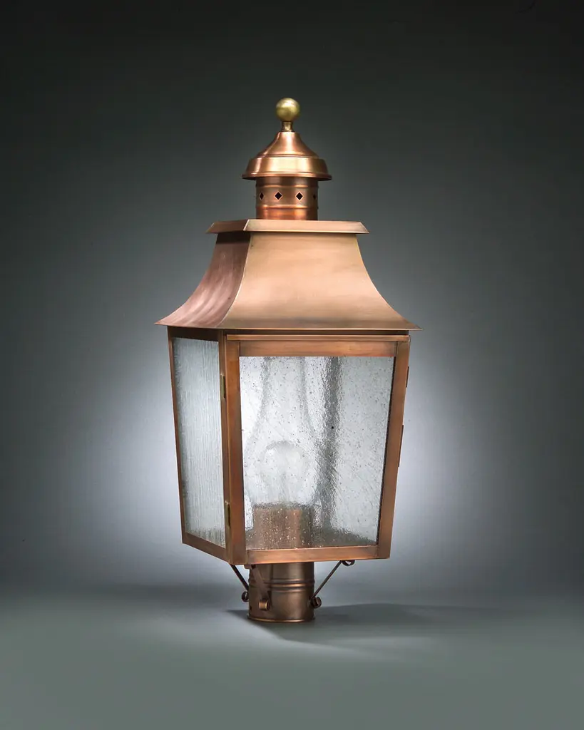 Pagoda Post Antique Brass Medium Base Socket With Chimney Clear Seedy Glass