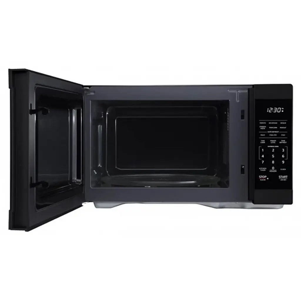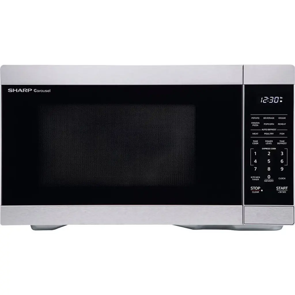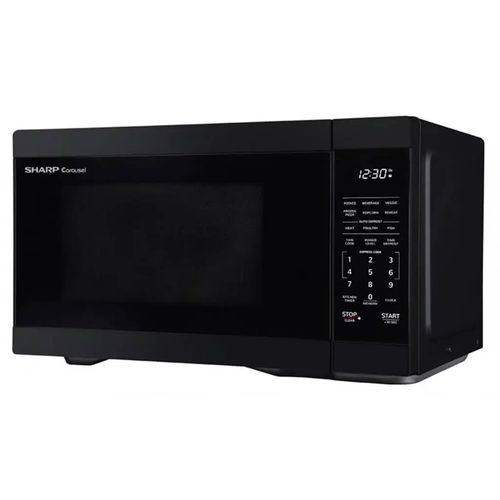 The Sharp Mid-Size, 1.1 cu. ft., 1000 Watt Microwave Oven in Black takes up less space on your countertop and is our smallest oven for a full-size dinner plate.The SMC1161HB is packed with thoughtful and innovative features. Convenient preset buttons make cooking and reheating favorite foods and beverages a breeze. Express Cook offers One-Touch cooking for up to six minutes. The +30 keys can be used for an instant start and to add time during cooking.Easy-to-clean White finish with stylish gray interior, and LED light complement your style. The 12.4 in., dishwasher-safe glassplate of the Carousel turntable system makes cleanup easy. The White LED display is bright and easy-to-read. Now that is Simply Better Living.With decades of experience designing innovative cooking appliances, it's easy to see why home cooks throughout the world trust Sharp Carousel. Convenient Innovation The SMC1161HB is packed with thoughtful and innovative features. Convenient preset buttons make cooking and reheating favorite foods and beverages a breeze. Express Cook offers one-touch cooking for up to six minutes. The +30 key can be used for an instant start and to add time during cooking. Built to Fit Your Needs The powerful 1000 watts in the SMC1161HB give you rapid reheating and fast cooking. The easy-to-clean, sleek black finish complements your style. Easy-to-use Preset Buttons, Auto Defrost, and the 12.4 Carousel turntable system keep heating and reheating a breeze. Quick and Accurate Defrosting Takes the guesswork out of thawing most foods including meat, poultry and fish by regulating the power to accurately and automatically defrost by time or weight.