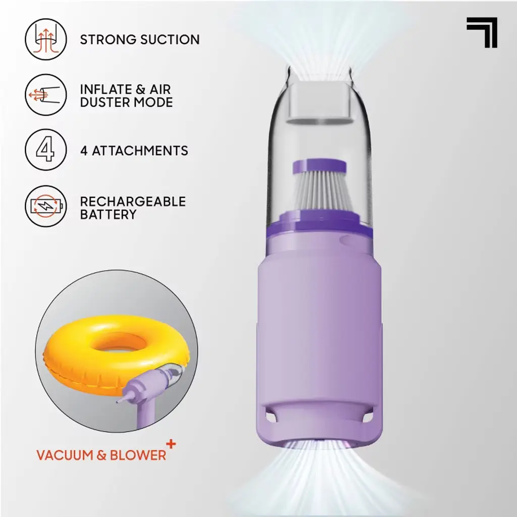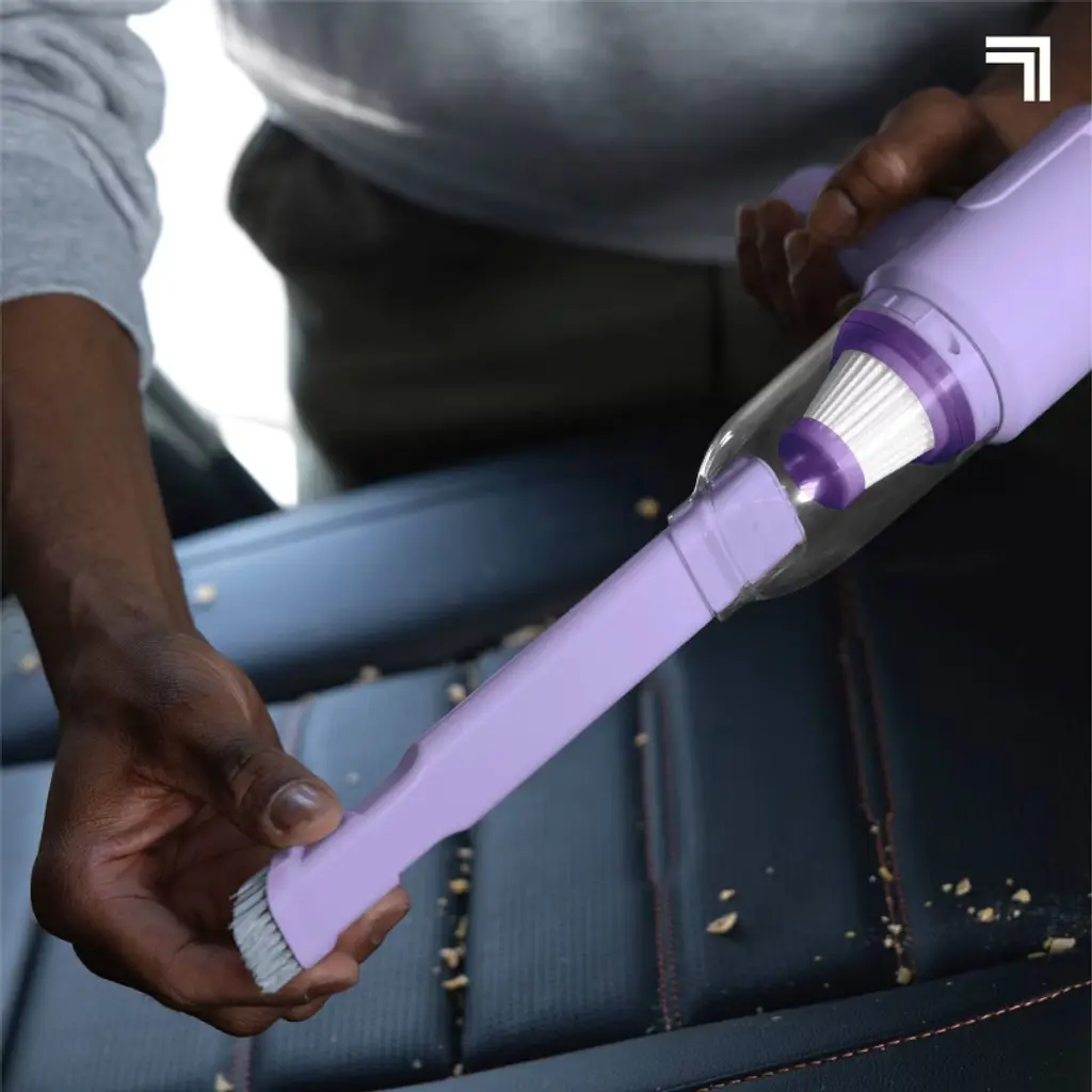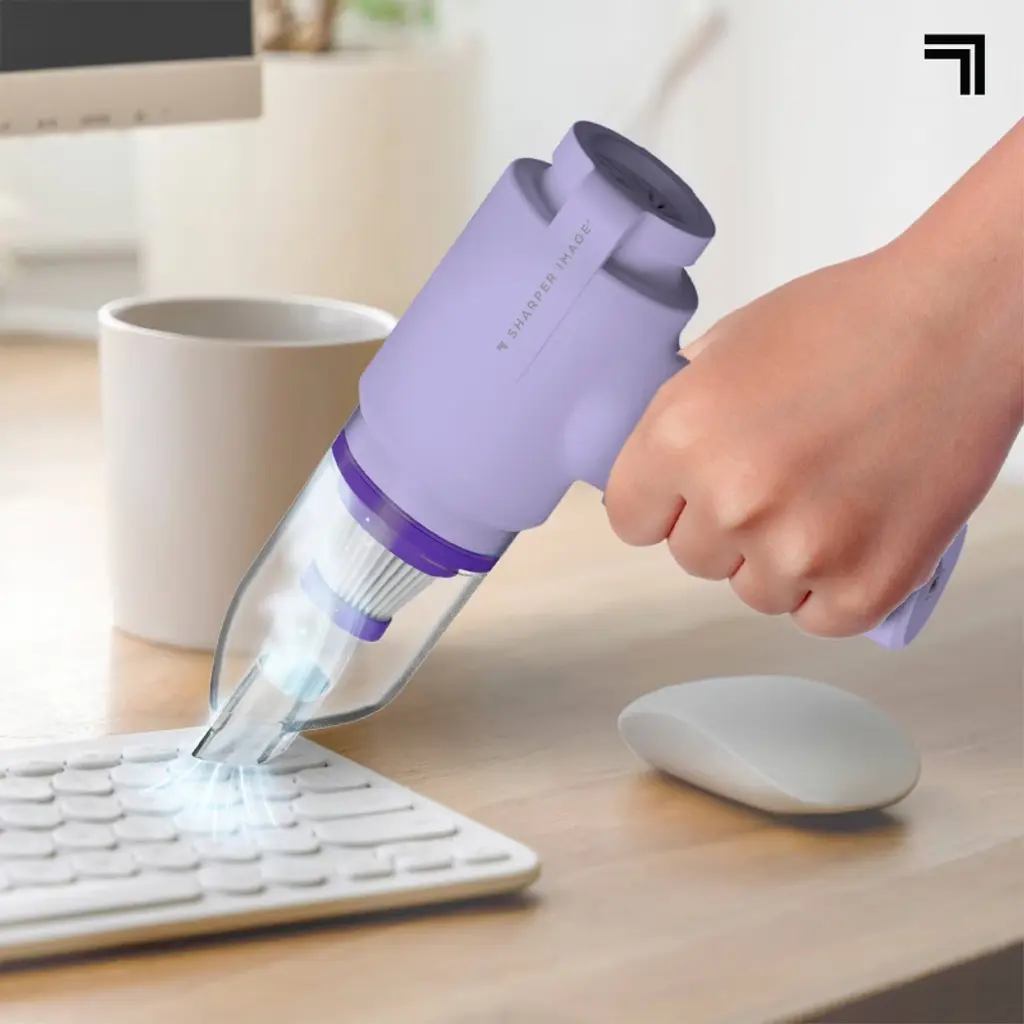 The Sharper Image® Dual Air Cordless Vacuum & Blower is a portable 2-in-1 device that makes quick cleanups easier than ever. Switch between strong suction to pick up debris and air-blowing mode to dust keyboards, vents, car interiors, or inflate small items. With multiple attachments included, it’s ideal for reaching tight spaces at home, at work, or on the go.The rechargeable battery provides up to 15 minutes of use on a full charge, and the lightweight build makes it easy to store or carry wherever you need it. Whether you're tidying your desk or cleaning out a keyboard, this compact tool offers efficient, cordless convenience.