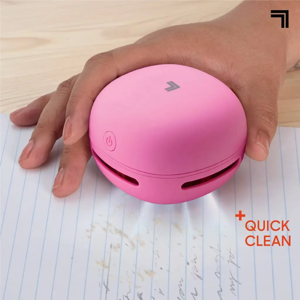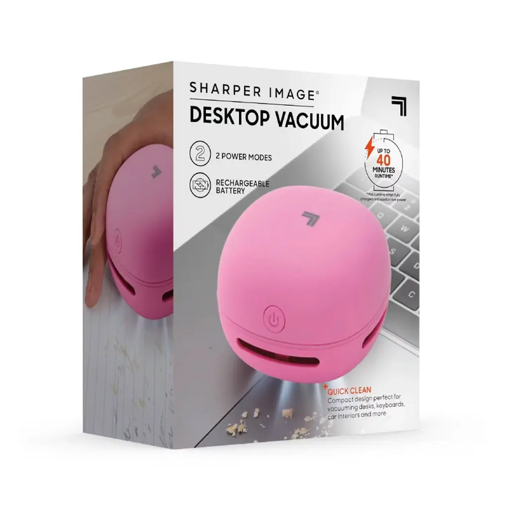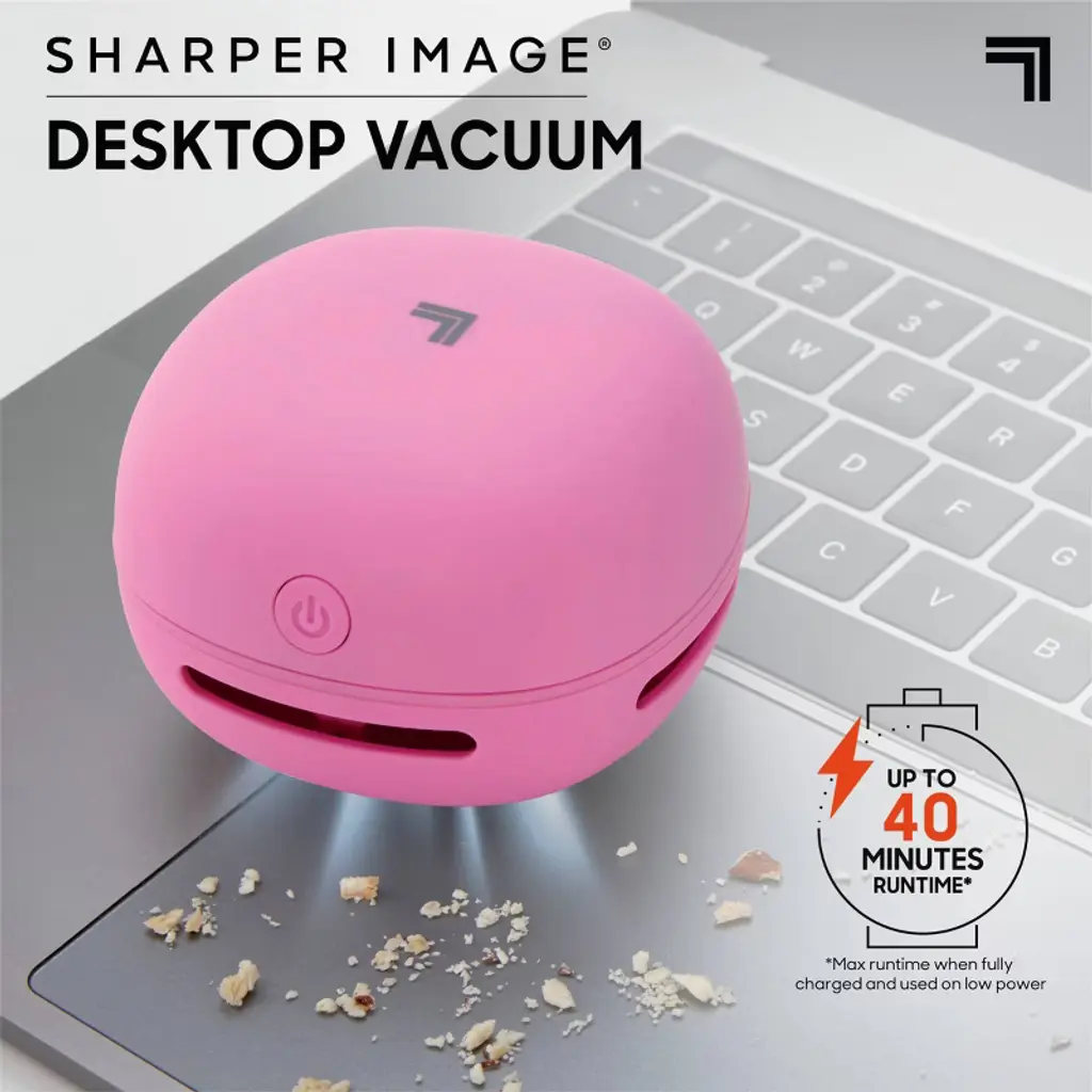 The Sharper Image® Desktop Vacuum is a compact cordless vacuum designed for quick cleanups around your home, office, or car. With two power modes and a built-in rechargeable battery, it’s perfect for picking up crumbs, dust, and debris from tight spaces like keyboards, desktops, and cup holders.This portable vac includes a crevice tool and cleaning brush to help you reach tricky areas, while the quick-empty dustbin makes maintenance fast and mess-free. Lightweight and easy to store, the Desktop Vacuum is a handy solution for keeping small spaces clean without the bulk of a full-size vacuum.