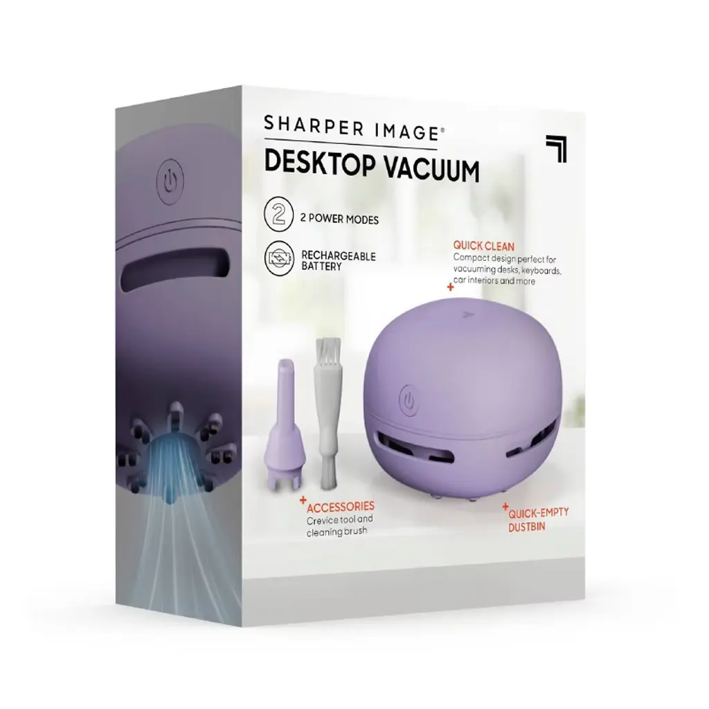 The Sharper Image® Desktop Vacuum is a compact cordless vacuum designed for quick cleanups around your home, office, or car. With two power modes and a built-in rechargeable battery, it’s perfect for picking up crumbs, dust, and debris from tight spaces like keyboards, desktops, and cup holders.This portable vac includes a crevice tool and cleaning brush to help you reach tricky areas, while the quick-empty dustbin makes maintenance fast and mess-free. Lightweight and easy to store, the Desktop Vacuum is a handy solution for keeping small spaces clean without the bulk of a full-size vacuum.