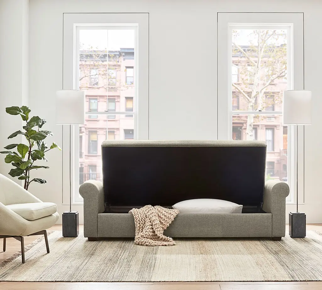 Timeless design, sensible size, top-of-the-line comfort: the Shasta Collection is everything you’d ever want in your living space. Made with comfortable function in mind, this grown-up futon encourages afternoon naps, movie marathons and cozy nights in. Lift the seat cushion to reveal hidden storage for blankets, books and beyond.