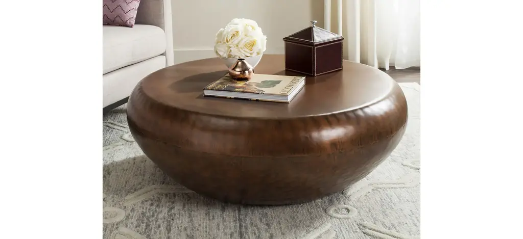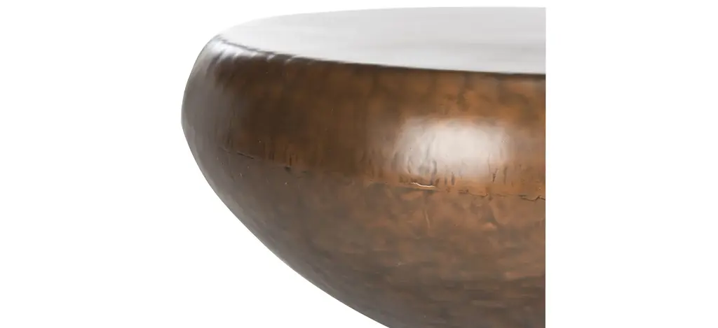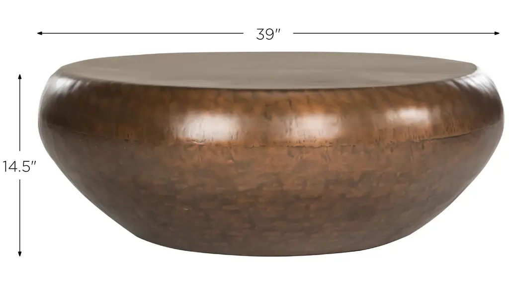 Ancient instruments in a Washington, DC museum inspired this richly shaped Shayla coffee table. The mellow, soothing antique copper finish creates a warm and cultured aesthetic, and its versatility makes it a modern treasure.